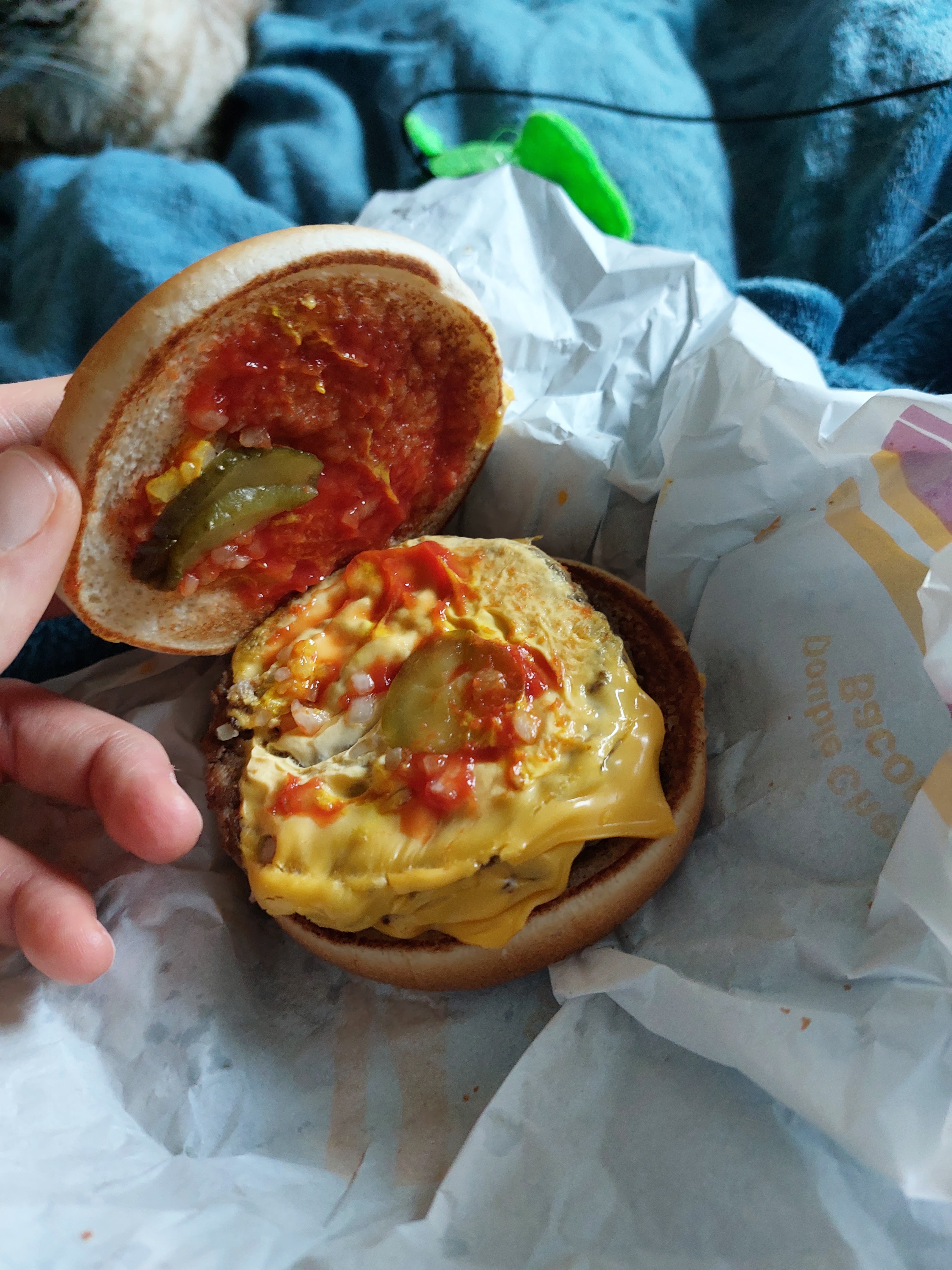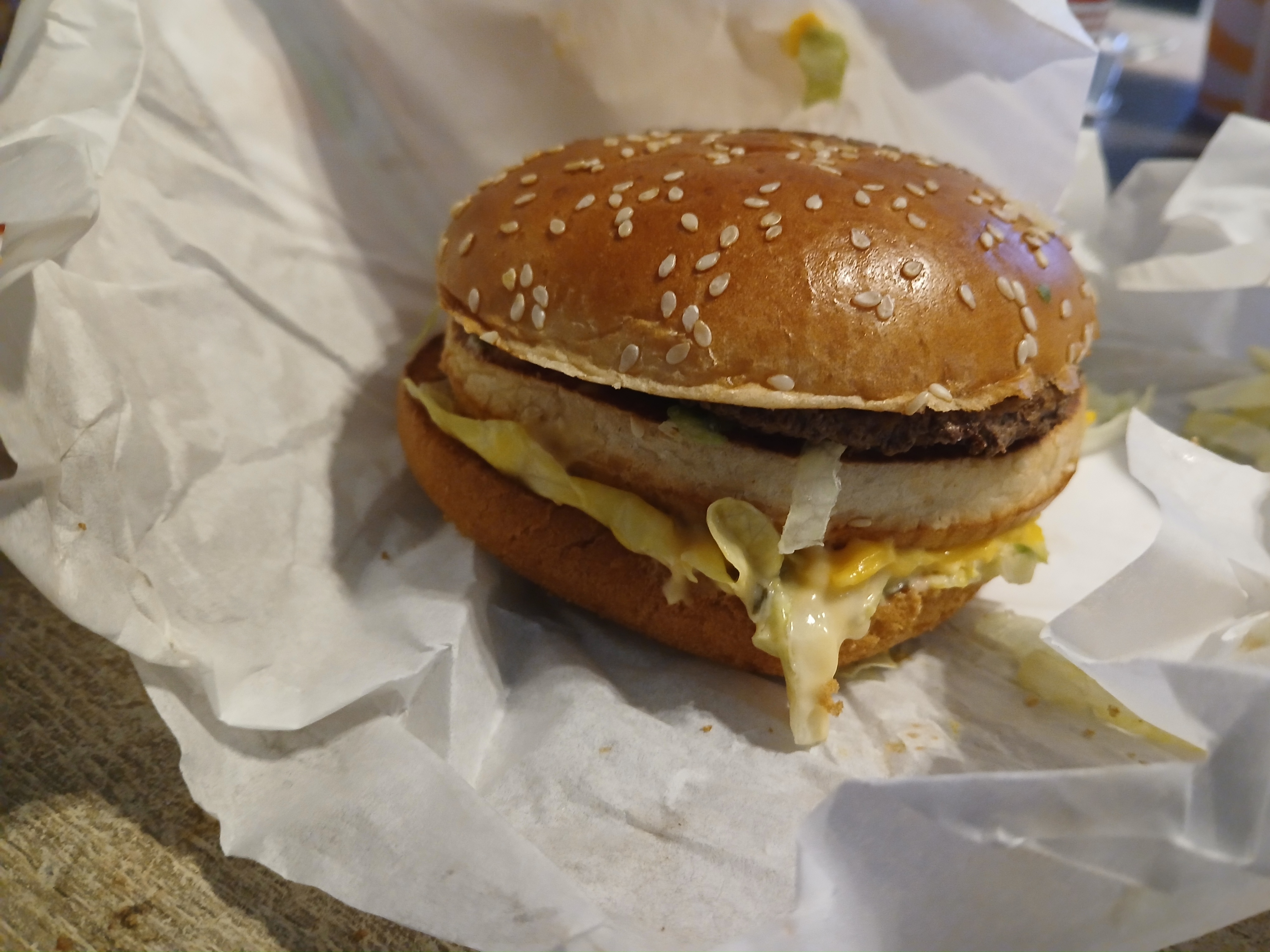 Un big tasty deux viandes commander y’a 20 min,15 min de route pour me rendre compte qu’on m’a servie un tasty 1 V 3 € de différence quand même 🥲