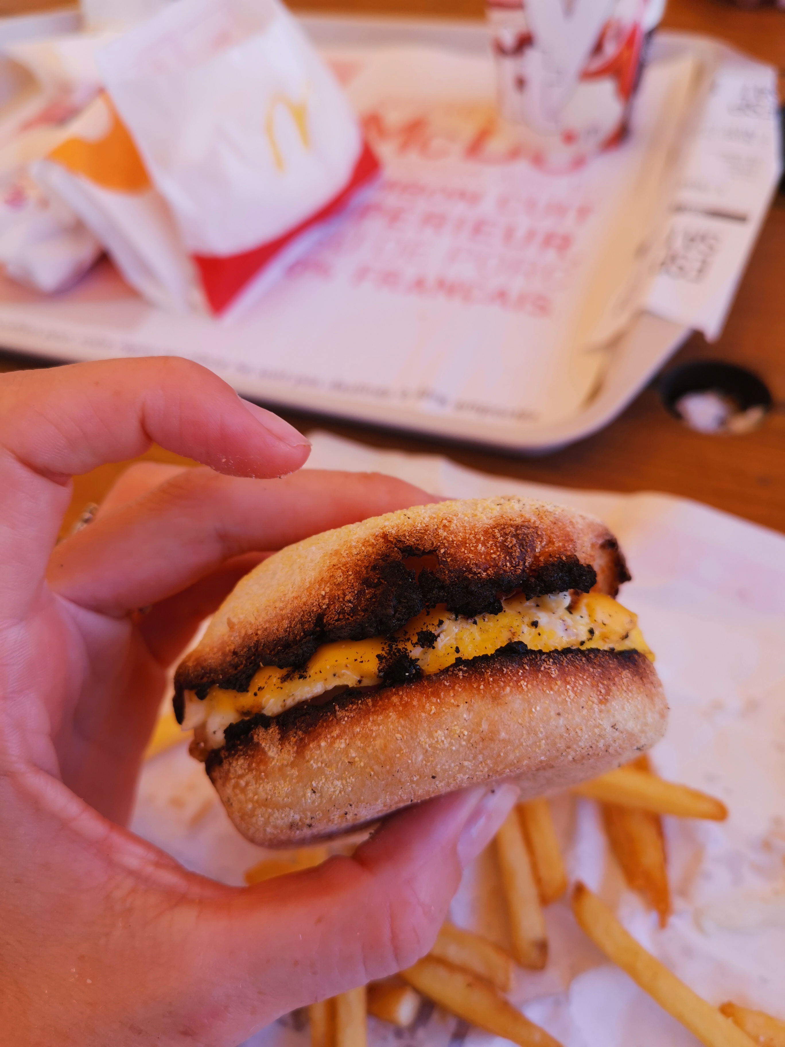 Petit dimanche matin (07/01/24), 09h06. Je me dis que je vais profiter du Mc Donald’s afin de pouvoir prendre un petit-déjeuner avant de prendre la route. Je commande un chocolat chaud avec un croque mcdo. Évidemment, le chocolat chaud n’est pas un chocolat, mais uniquement du lait. (Et encore) Le Croque McDo était bon, mais le conditionnement… Tellement chaud que tout a collé au papier, de ce fait, je n’ai pas pu tout manger sinon, c’était le papier qui venait! Heureusement, le muffin était parfait, mon pêcher mignon. 😅 Outre ça, j’arrive donc au drive, le restaurant est techniquement prêt à l’accueil du public comme il est OUVERT, drive uniquement. (sinon ça reste fermée le temps de, afin que...). À ma bonne surprise, l’accueil du personnel au drive n’était pas présent, la personne était d’un air plutôt fatigué de vouloir travailler et manque clairement de motivation à servir les clients. Rajouter à cela que le guichet de retrait de commande était charger de carton et donc clairement encombré, ce qui montre un manque d’efficacité sur l’ouverture du restaurant et être prêt, en mesure de. La moindre des choses c’est d’être en capacité a accueillir du public quand nous sommes ouvert, et que nous avons envie de l’accueillir. Merci. Grosse différence avec le McDonalds Rochefort Sud