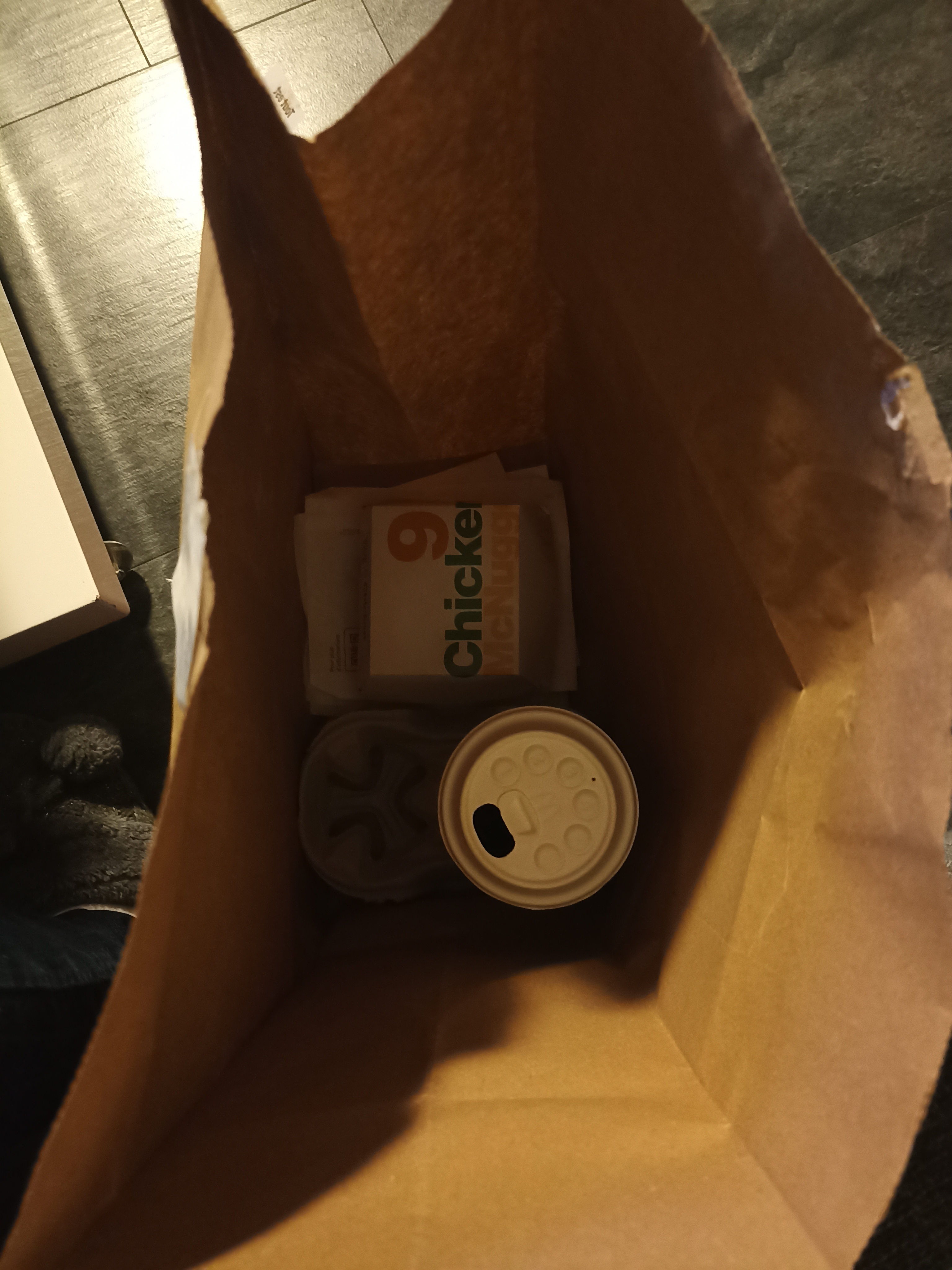 Deux commandes en drive en deux mois, à chaque fois il manque un truc .. j’ai utilisé mes points pour des nuggets, j’en ai pas eu. Et aujourd’hui j’utilise une nouvelle fois mes points pour des nuggets et finalement les frites dans mon menu sont absentes .. et en plus j’ai un énorme bout de tomate dans mon sandwich et c’est l’entame de la tomate …