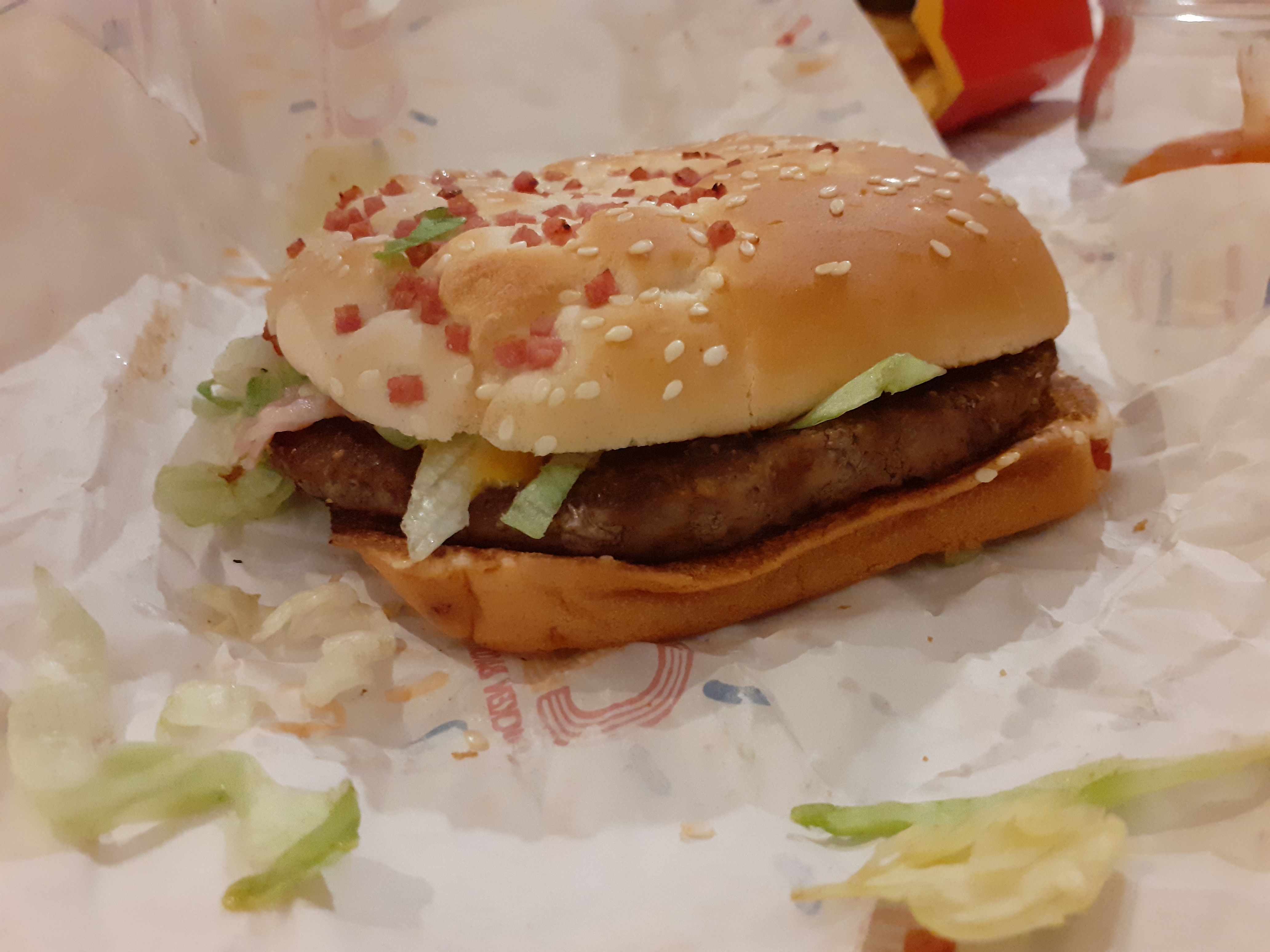 Pas de yaourt a boire dans les happy meal, Frite a moitié remplie. Big Mac bacon sans bacon. Et je parle même pas du wrap déglingué. En sachant qu'il y avait pas de rush car tout le monde était chez Popeye Popeye nous voilà