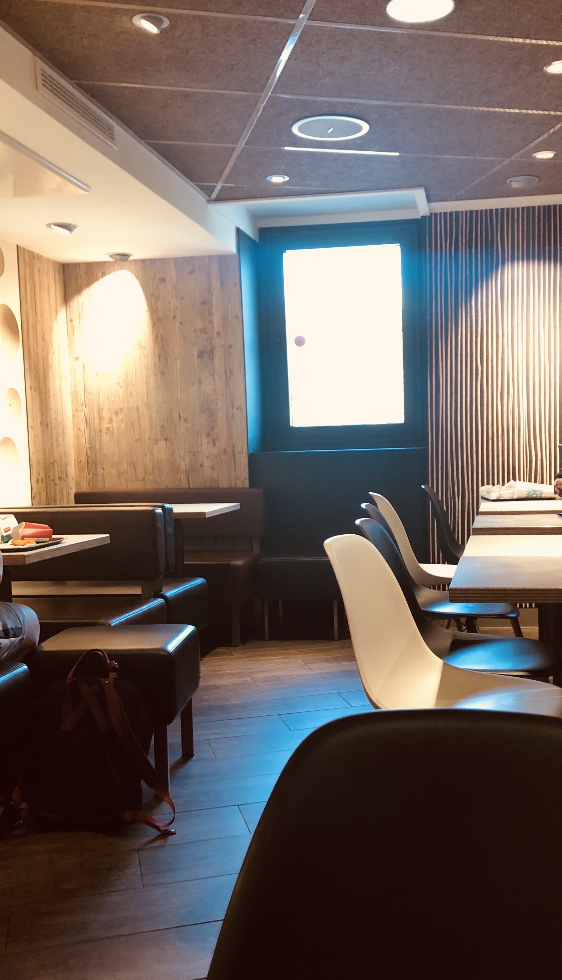 Je trouve que ce McDonald's n'est pas trop fréquenté le personnel ne se démarque pas mais n'est pas exécrable non plus. Pourtant un problème m'a sauté aux yeux après avoir récupéré ma commande : C'est tout petit! Oubliez l'idée d'y venir avec une bande de potes et espérer avoir, à coup sûr une place assise.