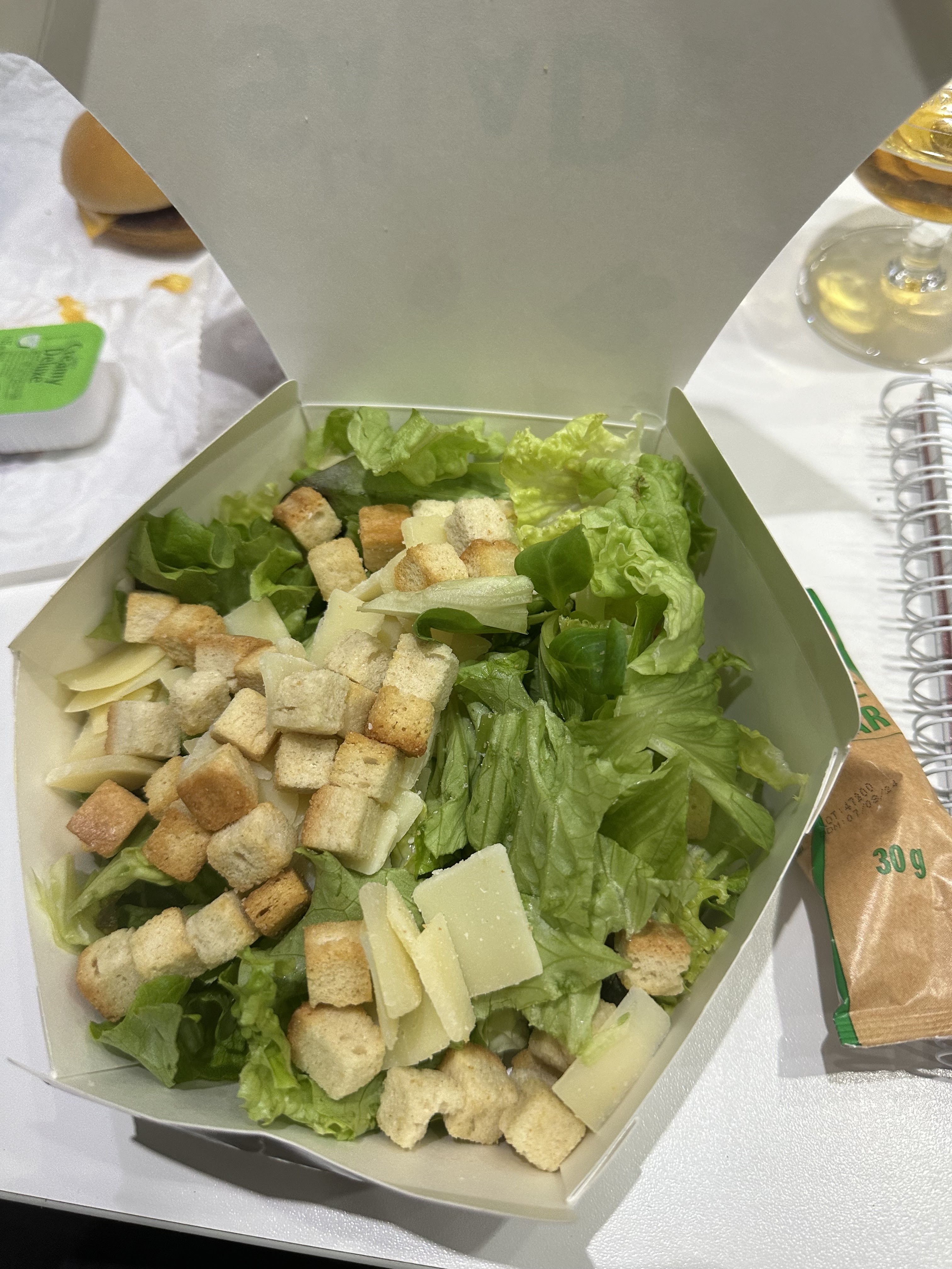 Service froid en terrasse, 10 € une salade césar à moitié vide scandaleux ! Hamburger 🍔 froid.