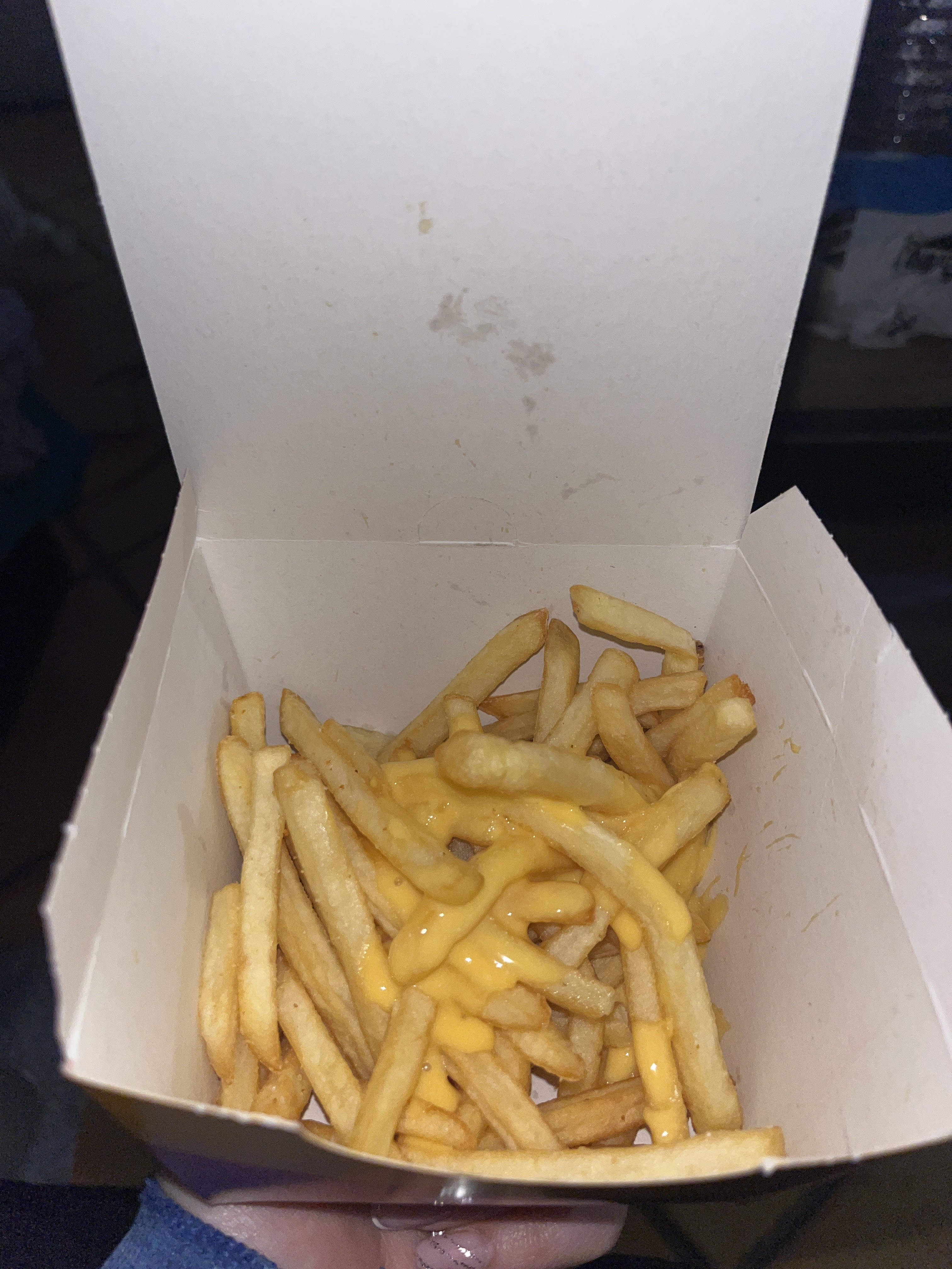 Commande au drive,déjà pas de menu pour choisir sans embêter le monde derrière,Frites passées et froides , sandwichs froids,on en a mangé une partie puis mal d’estomac mon mari a croqué dans le « double blue cheese bacon » tranches de fromage trop épaisses pas fondues,bref poubelle D’ailleurs,les vignettes du jeu Monopoly vous en avez pour le jus d’orange mais pas pour le fanta 🧐 Bien dommage!