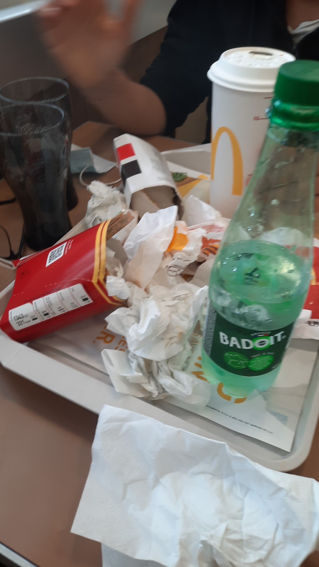 La femme du personnel qui m’a apporté mon plateaux étais souriante , très agréable et courtoise. Très rare chez mcdo , au point que je laisse un commentaire !