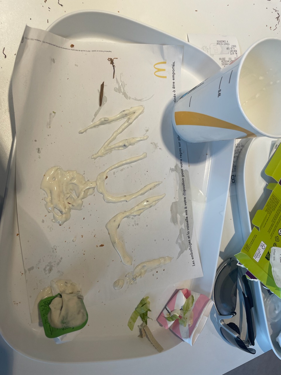 Ma fille a mangé macdo, il y’a une personnel demander nettoyer la table car on a pas encore fini, Elle était nettoyer comme même avec les produits. C’est vraiment dangereuse car ça rentrée dans les plats qu’elle en train de mangé. Ce ne fait pas comme ça, il fault que les clients partir puis nettoyer.