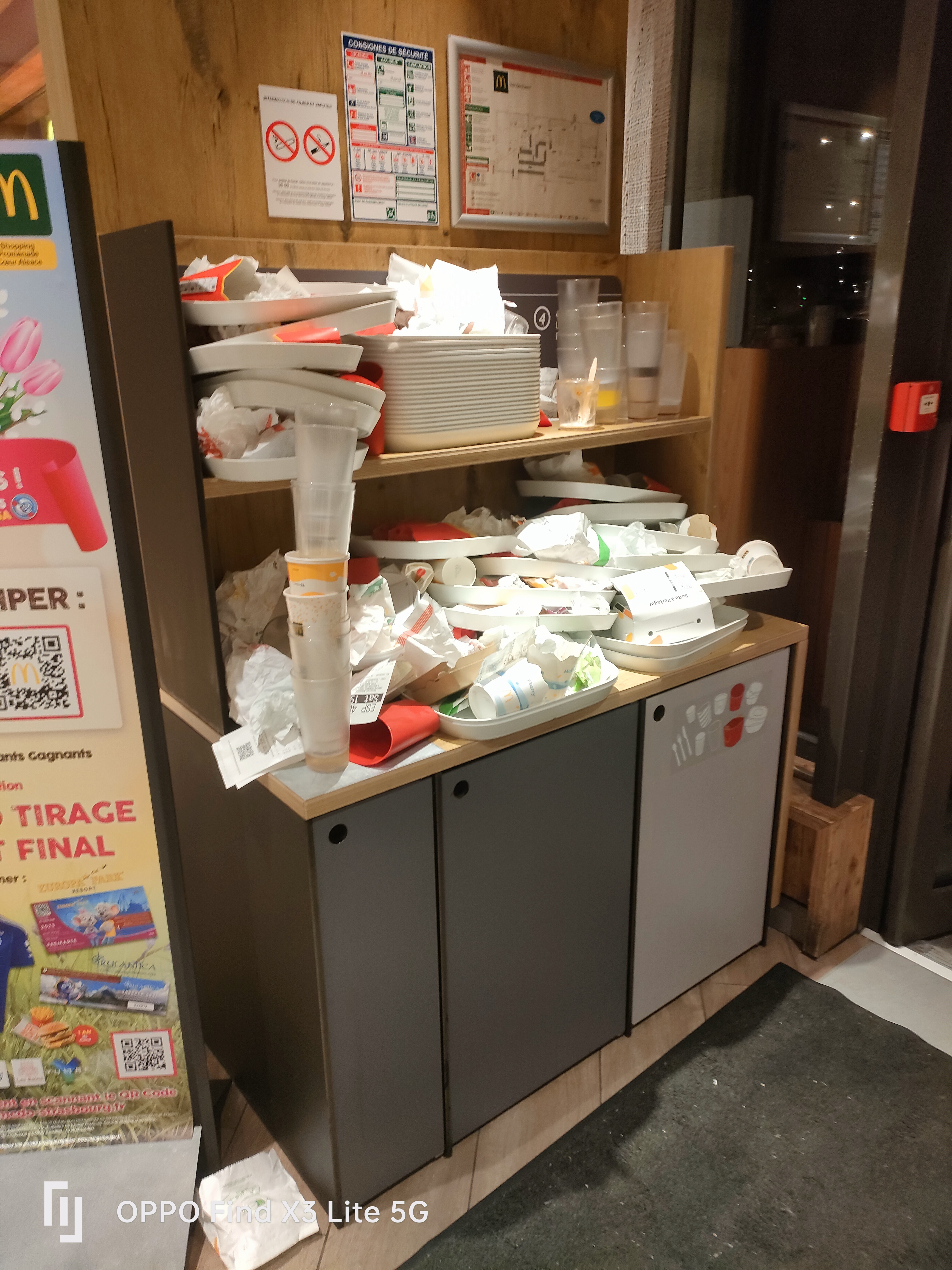 Avis du 5-04-2023 à 19:50 La première chose que vous aurez peut-être la chance de voir en entrant dans cet établissement c’est des poubelles de tries débordant d’emballages divers 🤨🤨🤨, en progressant dans le restaurant vous pourrez certainement aussi découvrir des tables remplies d’emballages Mac Donald. Bref un image pas trop encourageante pour un lieu dans lequel est servie de la nourriture 🥘. Je souhaite signaler cela au « manager » que ne porte aucun intérêt à mes remarques (il me snob clairement, qui suis-je pour lui faire des reproches c’est vrai quoi). Bref Monsieur le manager, souvenez-vous d’où viens votre salaire, respectez vos client et améliorez votre….. management. Voilà c’était mon post du soir, bonsoir.