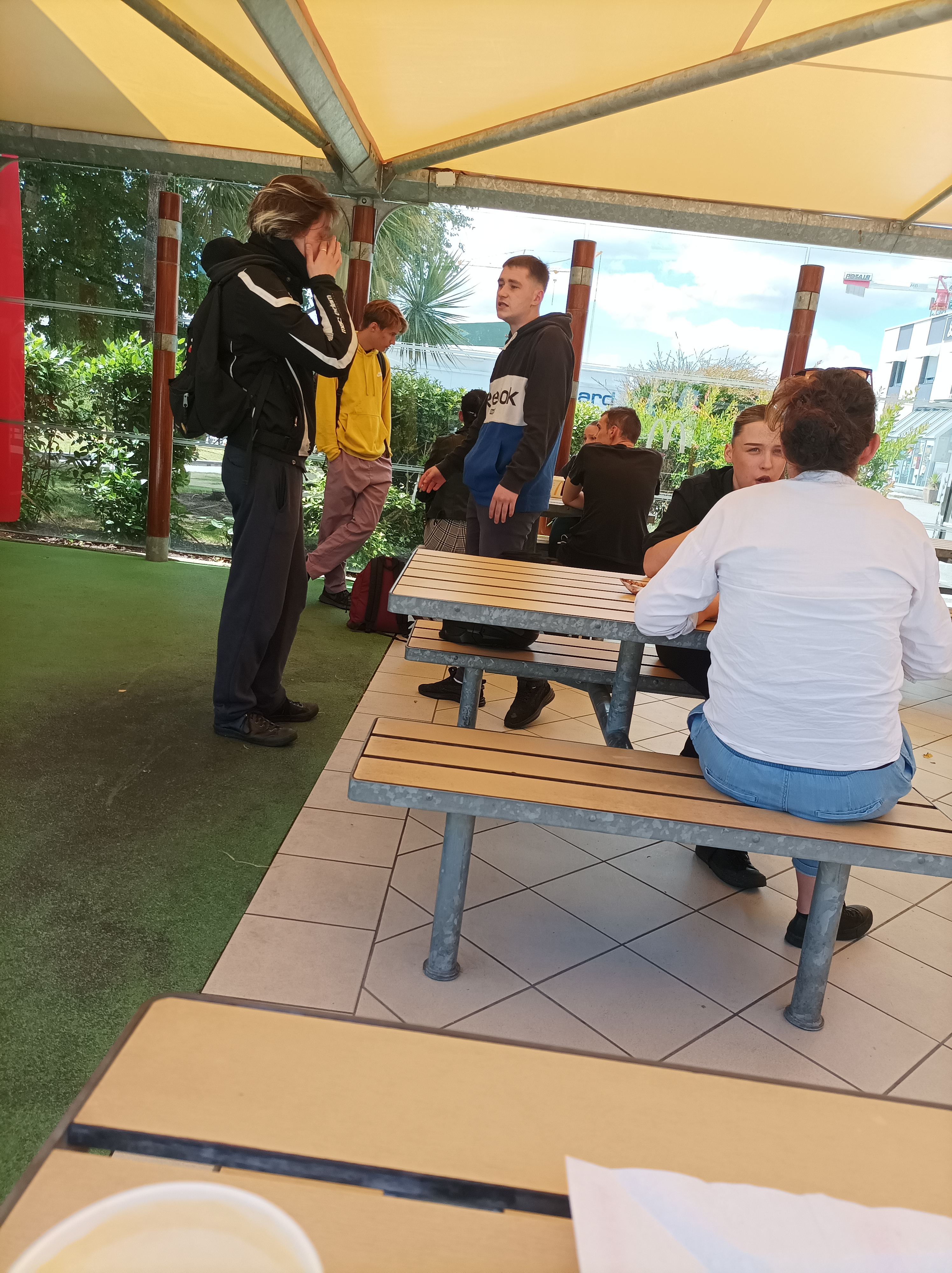 Les employés qui fumes juste à côté des jeux enfants c est vraiment dommage sachant qu ils y a pleins de place . Sur la photos ce sont TOUS les employer du moments au mc do Séné et casi tous fume