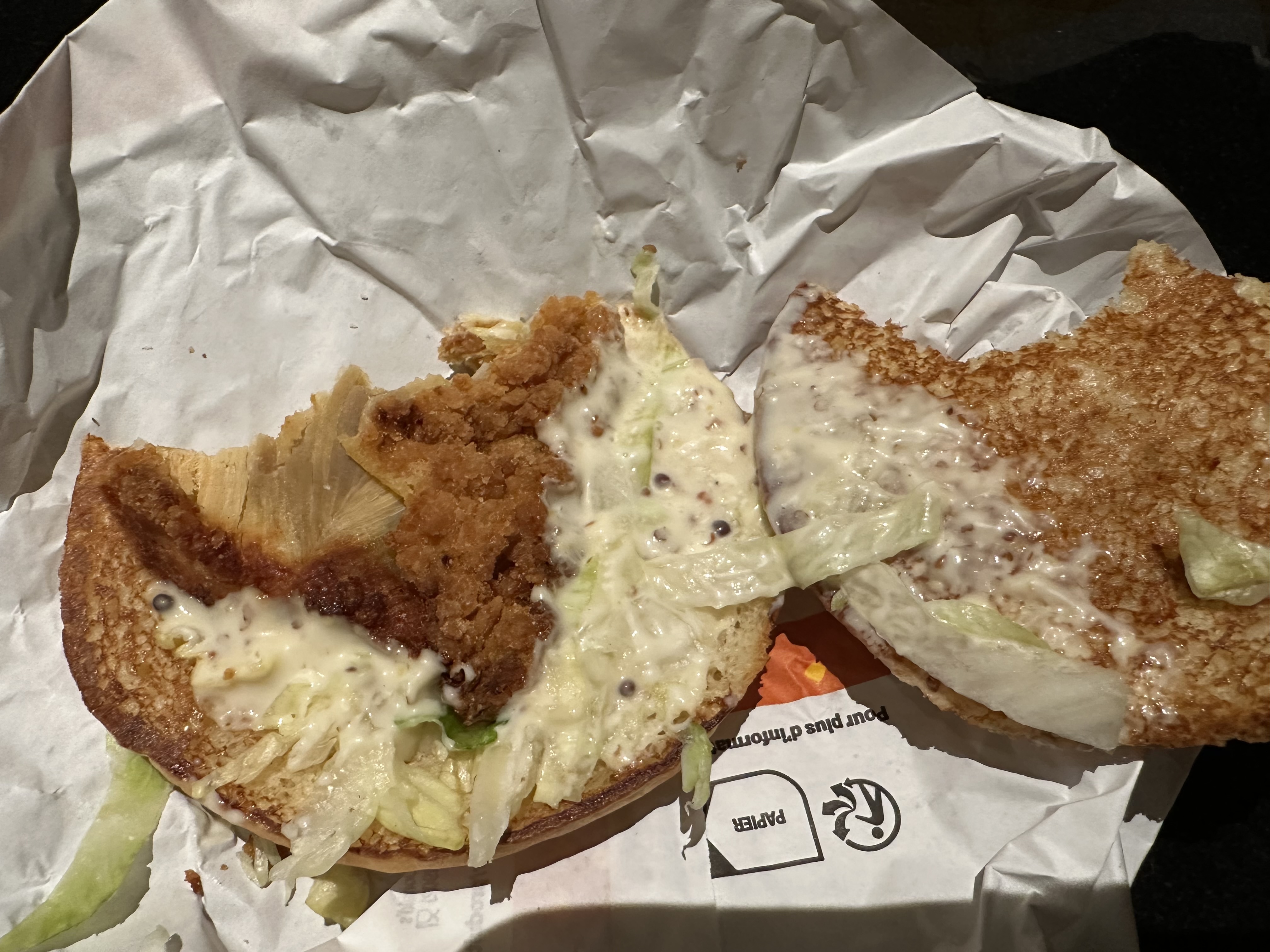 Le burger en vrac, c'est presque une habitude en commandant au McDo. Là, je laisse un avis par rapport au Coca: je n'ai pas pu en boire plus qu'une gorgée, j'ai failli vomir. Ma famille a essayé aussi, même réaction. Je ne sais pas ce que vous y mettez, si vous le diluez et rajoutez des produits, mais on aurait dit un médicament. Choquant.