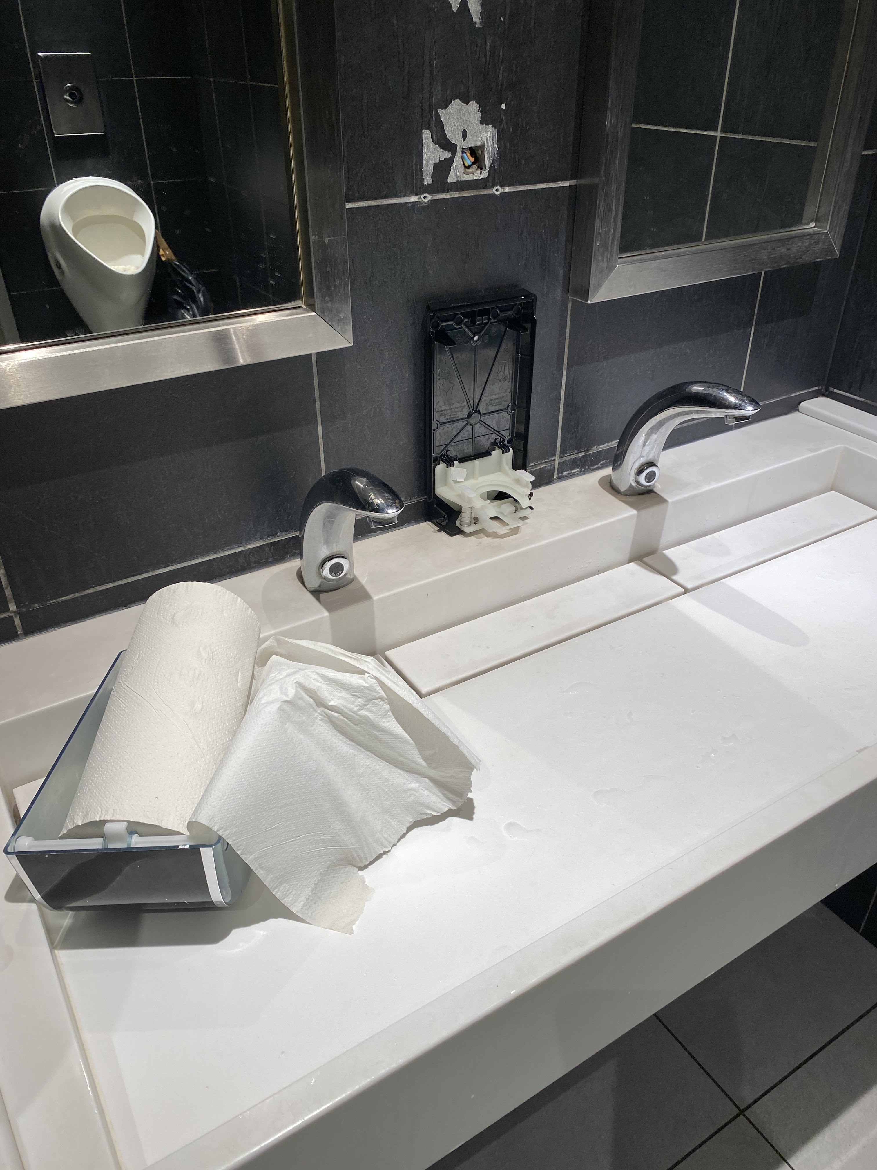Le lieu est sale et dangereux c’est dommage c’était très bien avant .. je vous montre une photo vous montrant de magnifiques vis qui dépassent au niveau de l’emplacement où on mets les pieds … Concernant la propreté le sol est extrêmement glissant, sûrement parce que il y a de l’huile partout .. Édit : la poubelle déborde, il y a une dizaine d’employé qui est passé devant sans rien faire …
