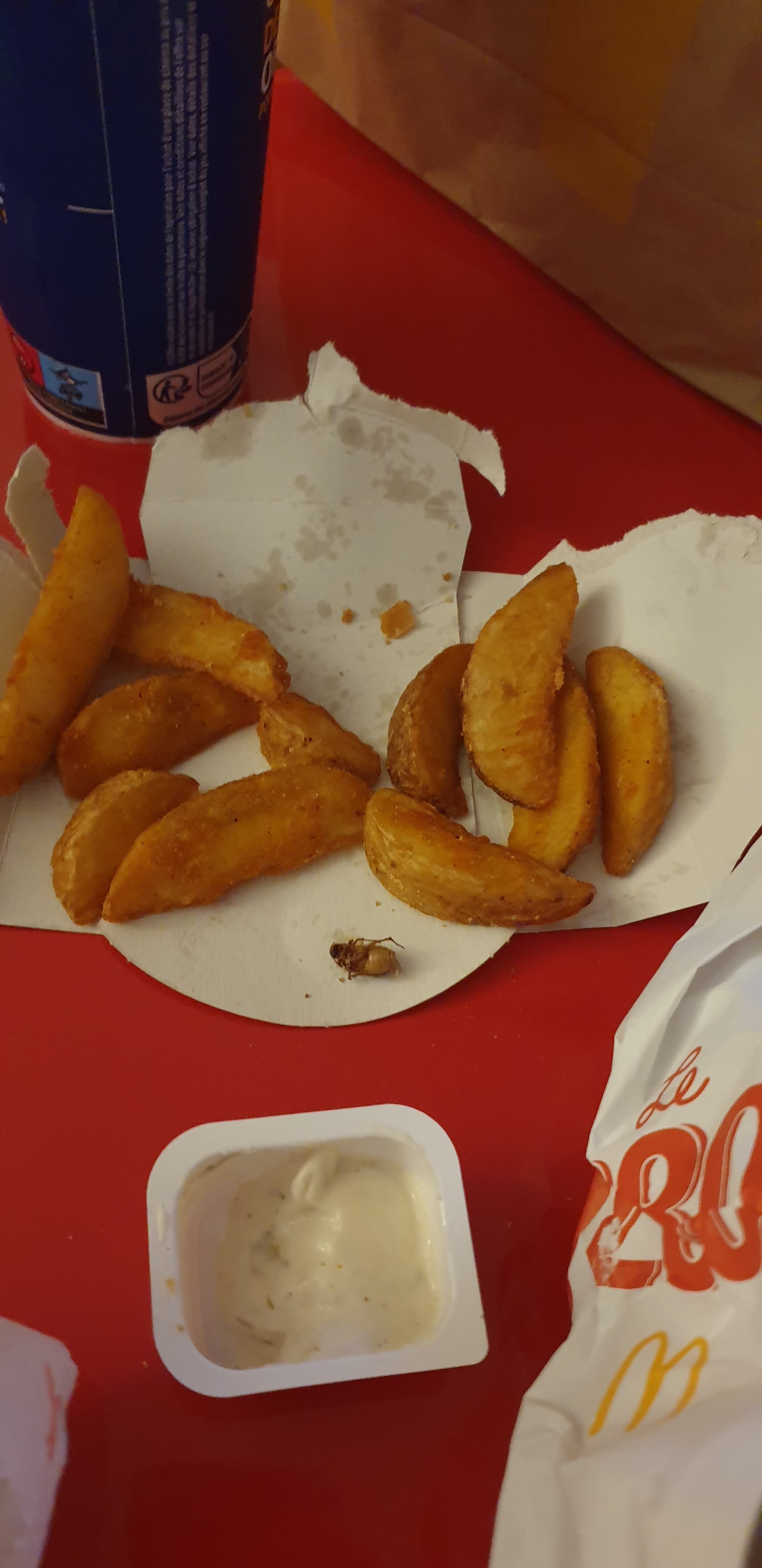 Bonsoir, je viens d'aller au Mcdo du choisy-le-roi 112 bd de stalingrad et je trouve ca dans mes potatoes ! C'est inadmissible, faites quelque choses cst trés grave. Ce n'est pas une simple mouche !! Incroyable ! Recontacter moi ou je porte plainte.