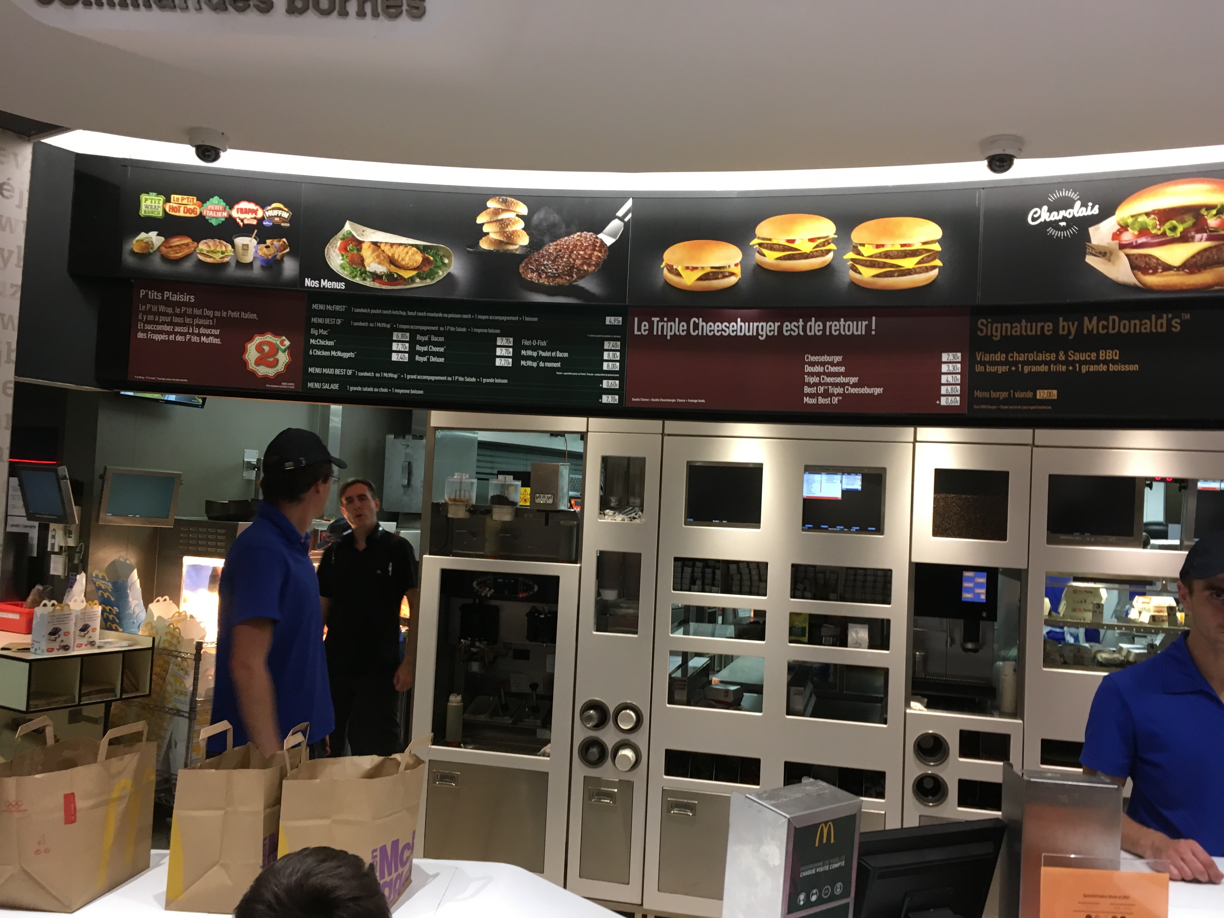 Heureusement que nous sommes tombés sur une charmante personne pour commander sur les bornes . Le personnel de la réception a refusé de nous aider alors qu’il y avait peu de monde . Les bornes ne sont pas adaptées pour les personnes âgées , de ce fait il y a une ségrégation par l’âge