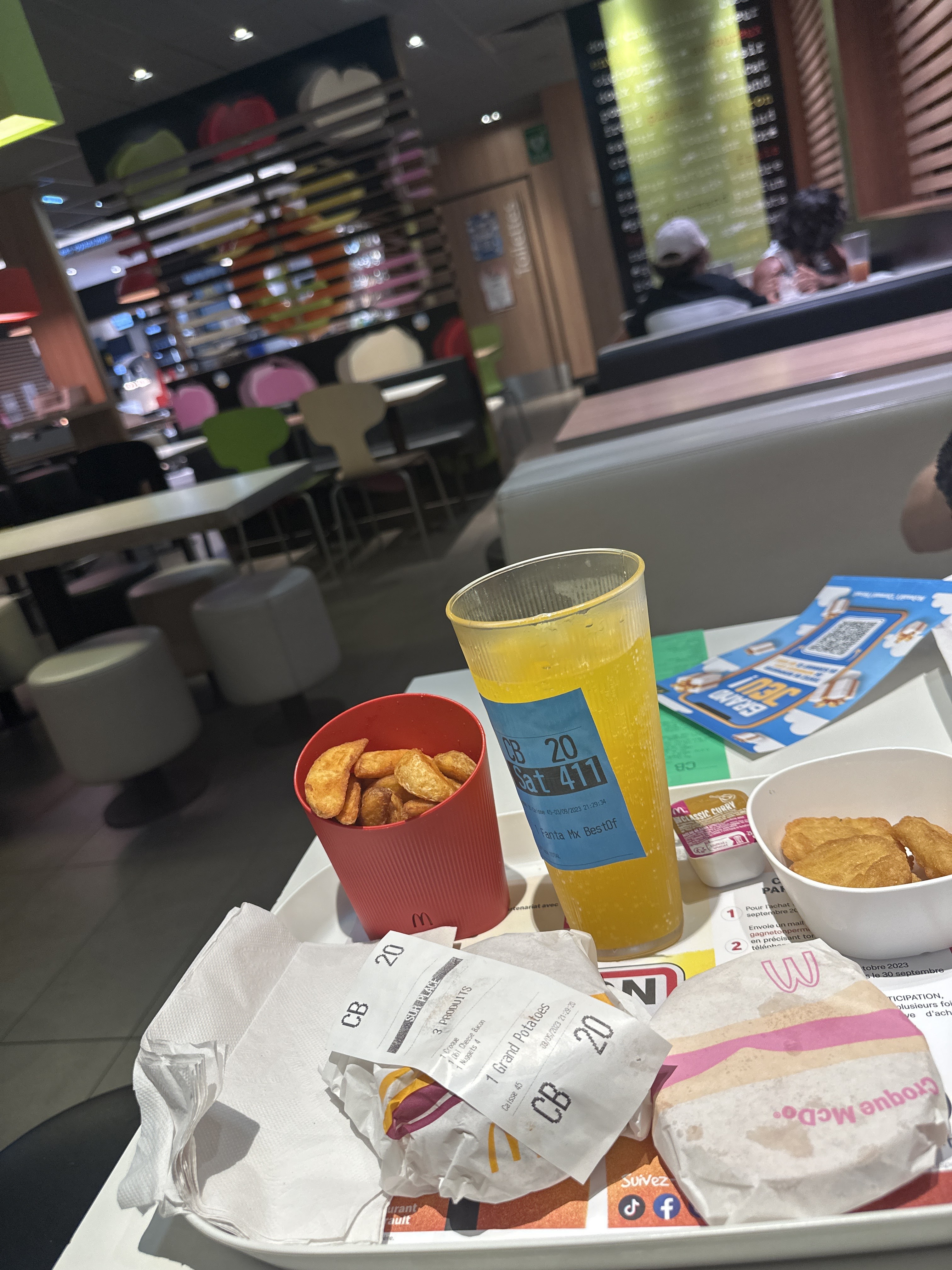 Franchement je m'attend pas un repas de ouf mes la nourriture et froide c'est horrible les frite on dirai de la veille sa a beaucoup changé mac do