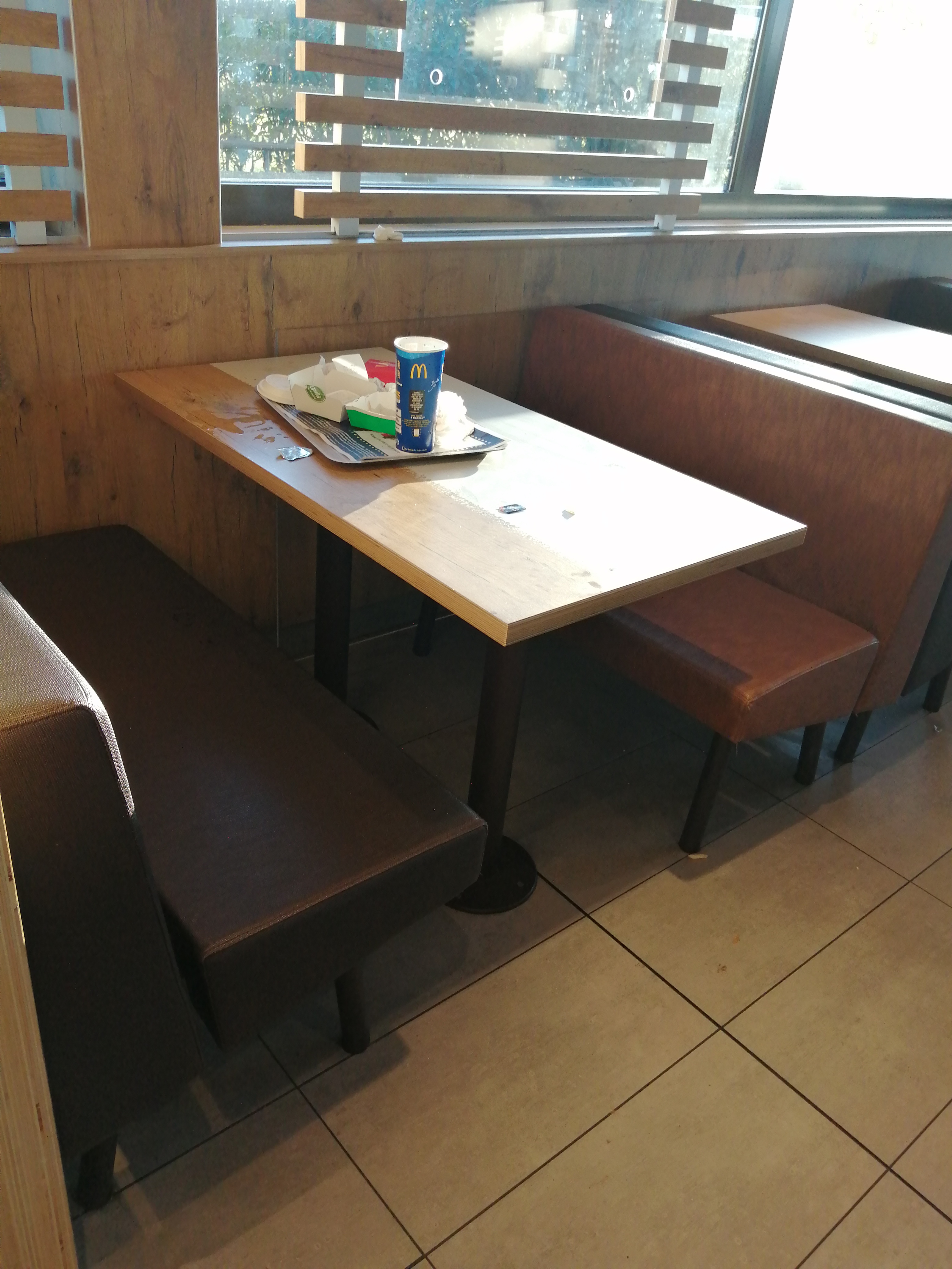 Mc do clairement sale ... Wc n'en parlons même pas. Pas de papier wc et l'hygiène est à revoir. Franchement pas top. Robinet des wc casses ...