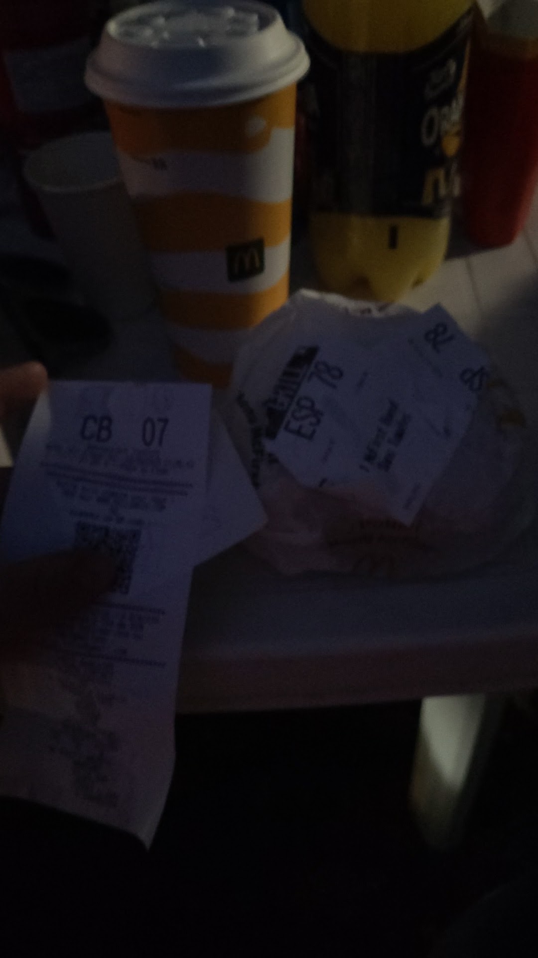 Je viens de rentrer chez moi et je me rends compte que le sandwich n'est pas le bon. J'ai la commande CB07 et le sandwich avec l'étiquette ESP78. A un moment donner un Big Tasty et un MC First ce n'est pas le même prix. En sachant que la commande 78 était celle d'une employée, j'espère simplement que l'erreur n'était pas faite exprès. Pas de serviettes, on doit s'essuyer avec quoi en sachant que les sandwich sont fais avec les pieds.
