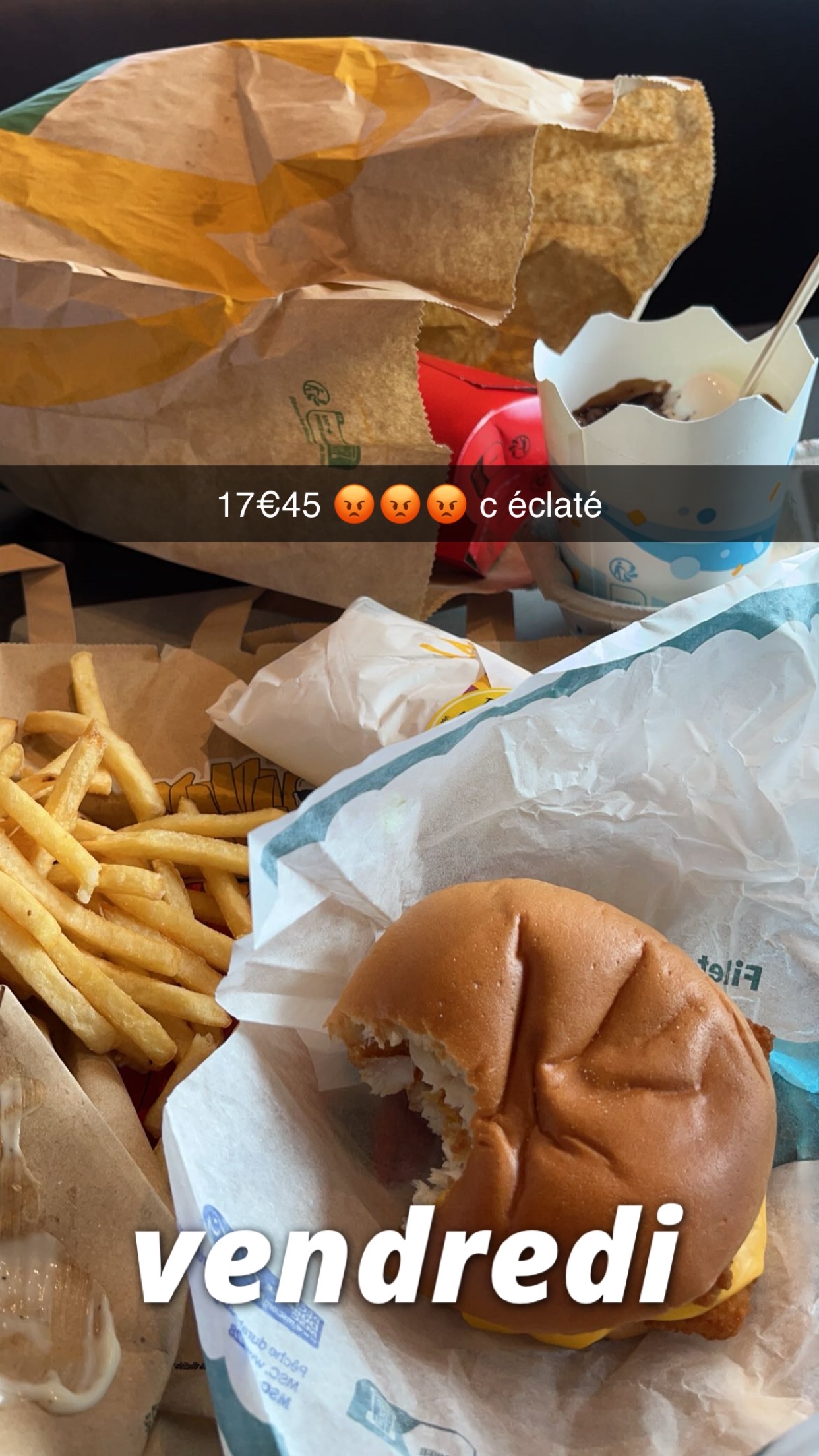 Une commande de 60€ avec des burgers, des boissons et des glaces... Tout ça dans 1 seul sac!!! Le résultat en photos... Les gars n'en n'ont rien à faire