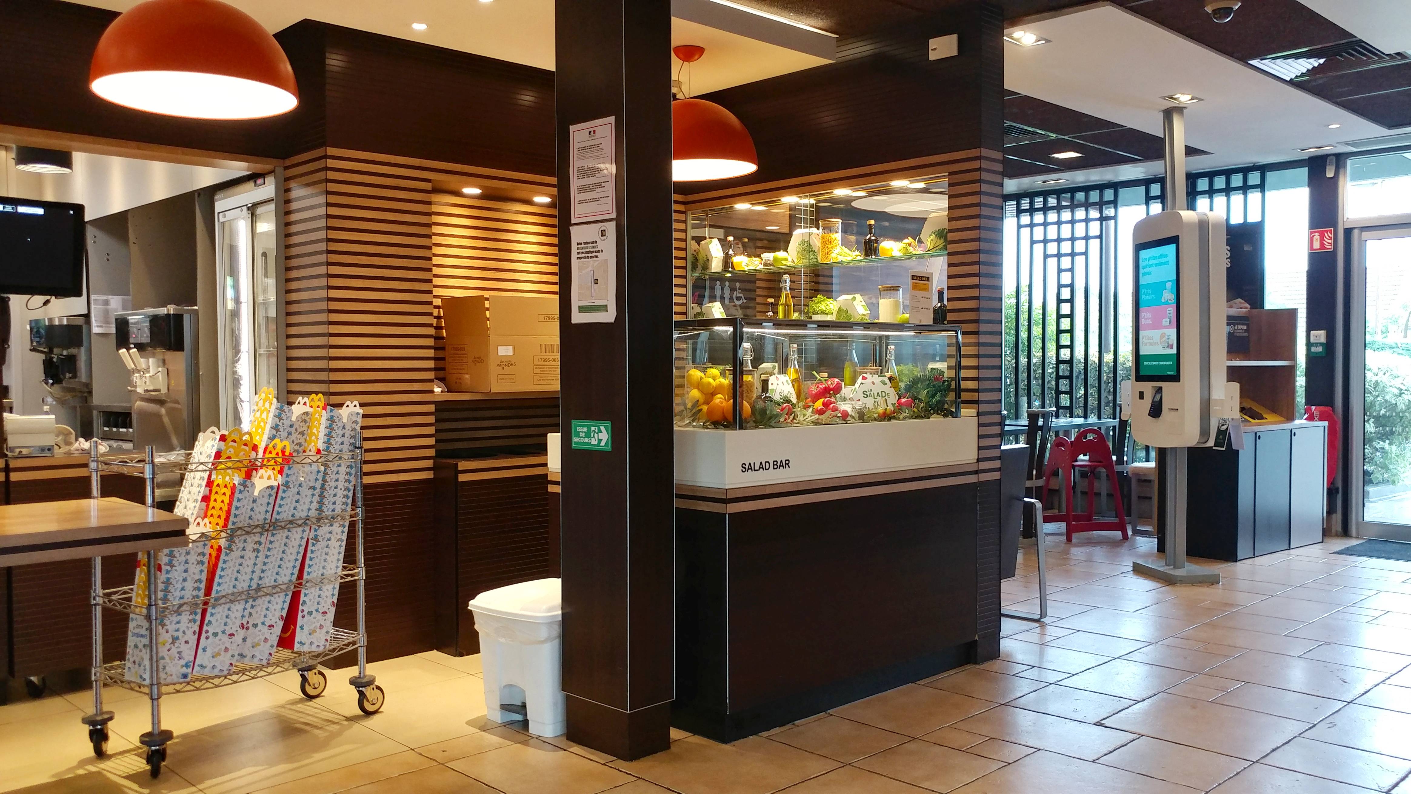 J'y étais allée aux coups de 14h, il y avait peu de monde et le service était rapide. La particularité de ce Mcdonald's tient au fait que toutes les commandes se font sur bornes. Le règlement peut cependant être effectué à la caisse (espèces) ou en borne (carte bleue).