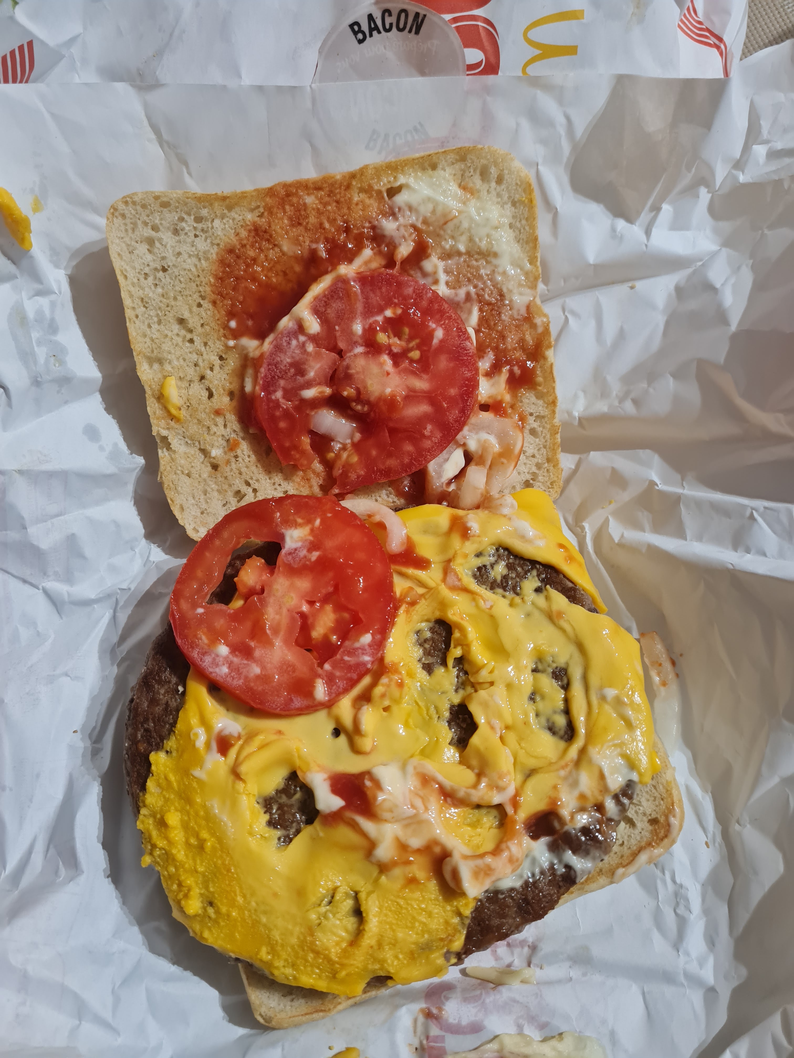 😡😡😡 déçu de Macdonald plan de grasse !!! Tu paye pour un 280bacon et ben un sandwich sans becon !!! Sandwichs Froids !! Pas serviette.. Mauvais service