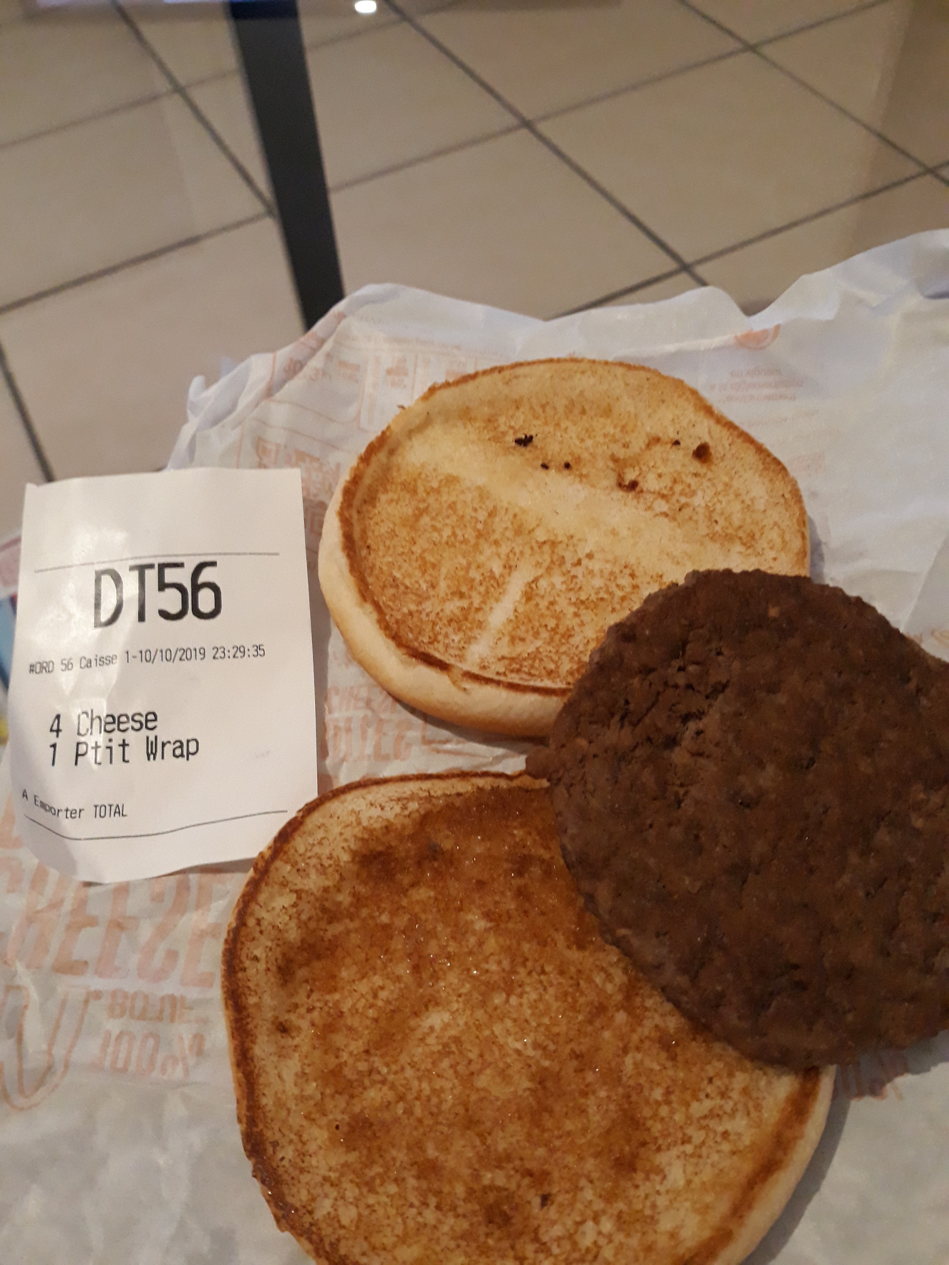 Déçu, 25 minutes d attente pour 4 cheese et 1 petit wrap, de plus la belle surprise 1/2 cheese photos à l appuie