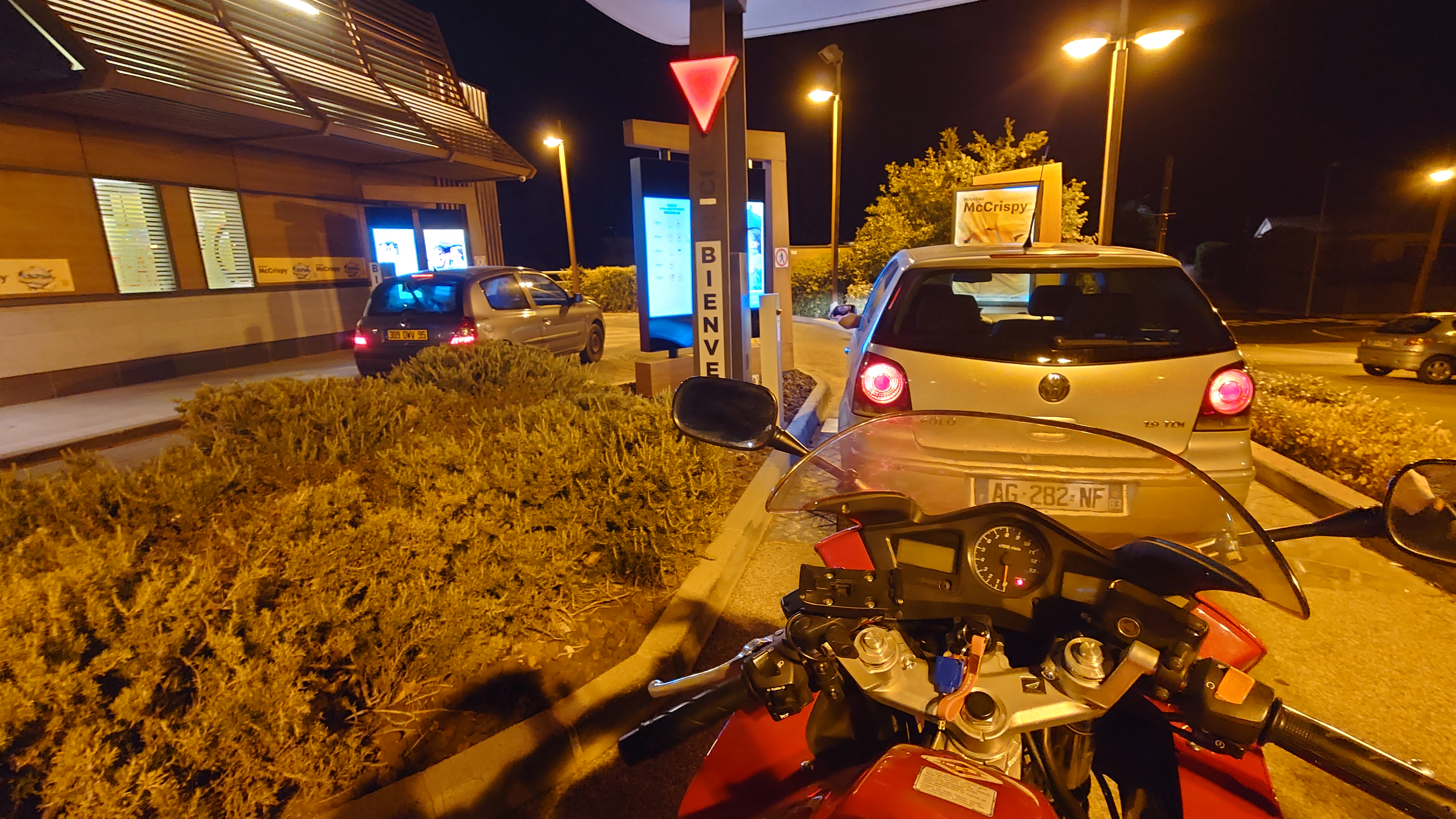 De passage sur notre route d arrivée. Prise de commande à emporter. Il manquait les potatoes. Assez dingue de ne pas se rendre compte qu il manque les frites dans un menu. En toute logique on a pas eu non plus la sauce à potatoes. Un peu honteux ce genre d oubli en 2021, surtout après 800 km de route on avait fin. Prochaine fois camion pizza.