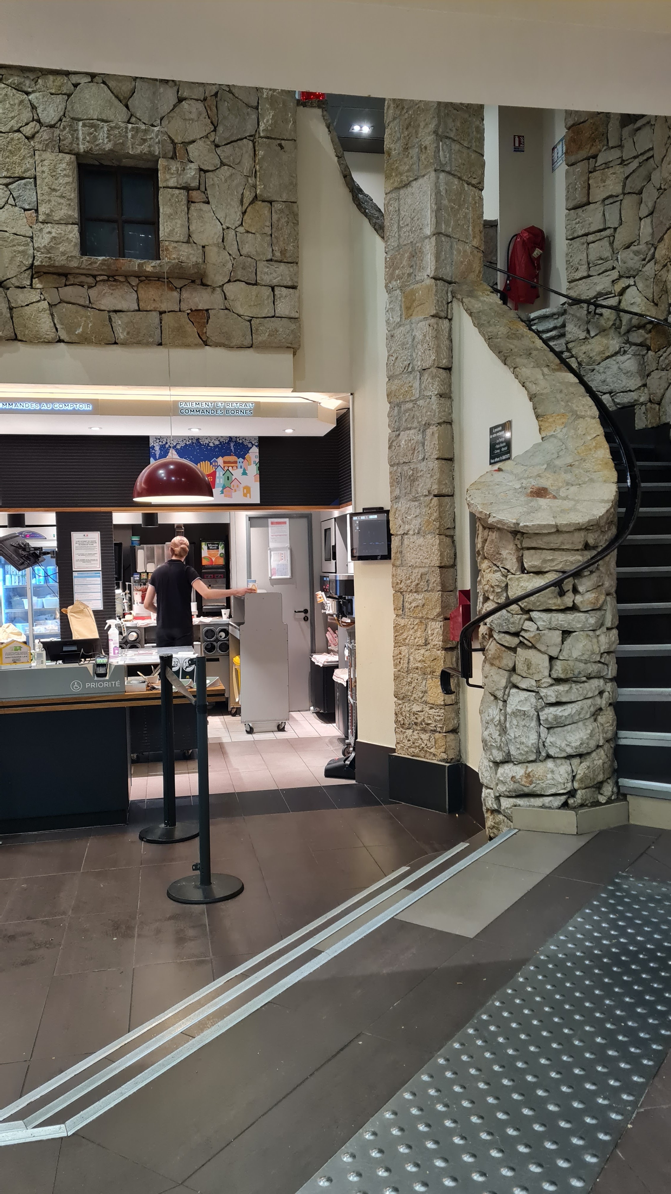 Employés débordés , attente de plus de 20 minutes après commande sur la borne j'ai dû aller chercher moi même mon plateau ..de plus des plateaux traînaient sur les tables , les poubelles étaient pleines... l'état des WC pitoyable...bref je suis peut-être tombé sur un mauvais jour.