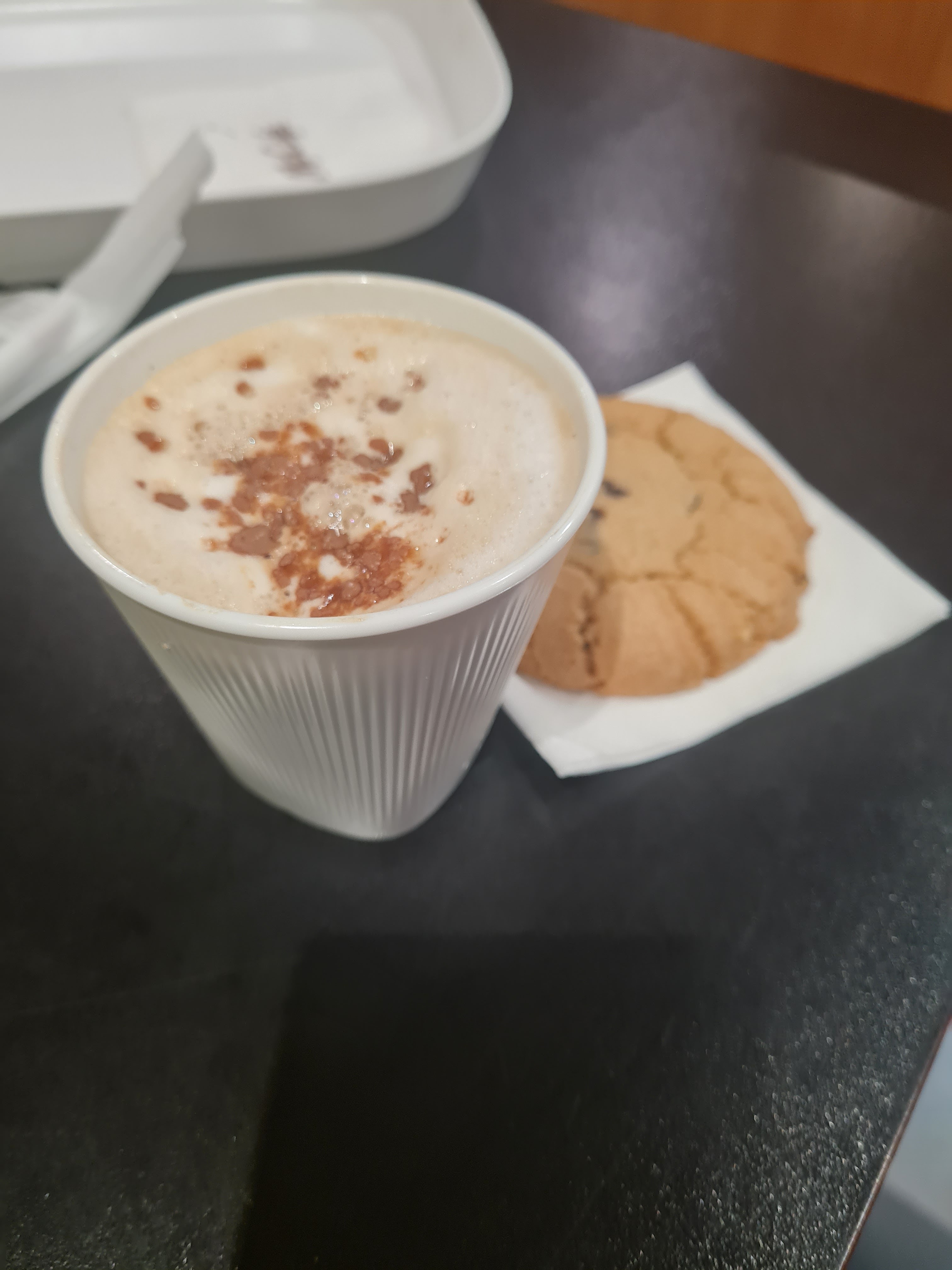 J'ai précommandé un double expresso et un pain au chocolat sur l'écran et j'ai reçu un numéro pour le service à table. Malheureusement, le membre du personnel de la section café a semblé ignorer ma commande pendant environ 10 minutes. Finalement, un autre employé m'a remarqué que j'attendais et a informé l'employé du café de ma commande. Malgré cela, il y avait toujours un manque d'urgence notable et après 5 minutes supplémentaires, j'ai dû rappeler personnellement au personnel du café les détails de ma commande. 🤔🍰☕