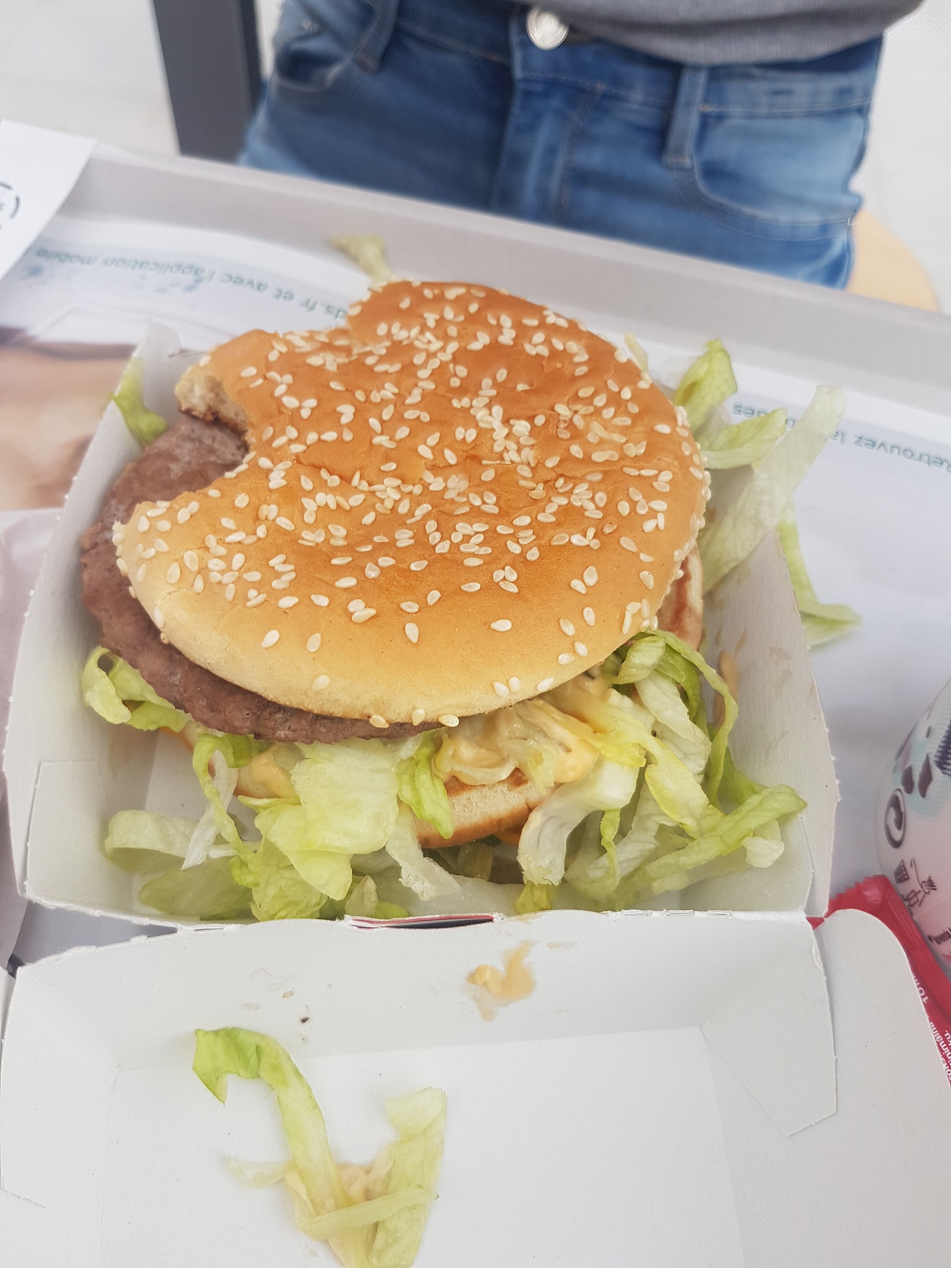 En fin de matinée on est passés, mon fils et moi, chez Ronald 🤭(qui n'existe plus, je crois). Bref... côté nourriture, le classique du Mac do, pas de surprise au menu, mais c'était bon car c'était chaud, ce qui nest pas toujours le cas peu importe le restaurant. L'horaire y était peut être pour quelque chose ?! Quoi qu'il en soit, c'était propre, la dame qui nous a servi souriante. Un moment sympa, sans cohue et au calme.