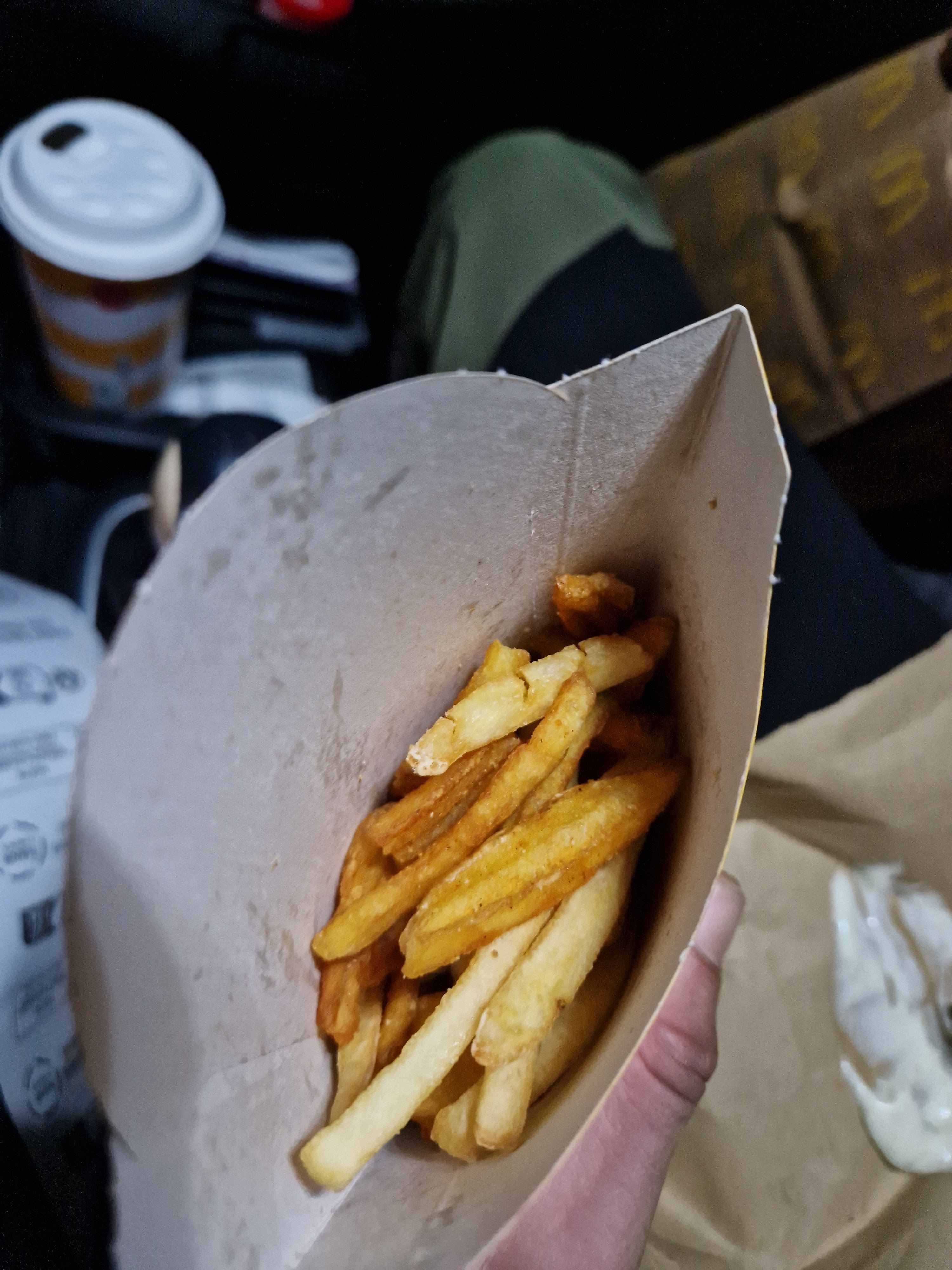 Il manquait une portion de frites. Aucun socle reçu pour les boissons en drive, les hamburgers sont devenus tout humides... En drive, le monsieur est sorti nous donner notre commande sans gants.