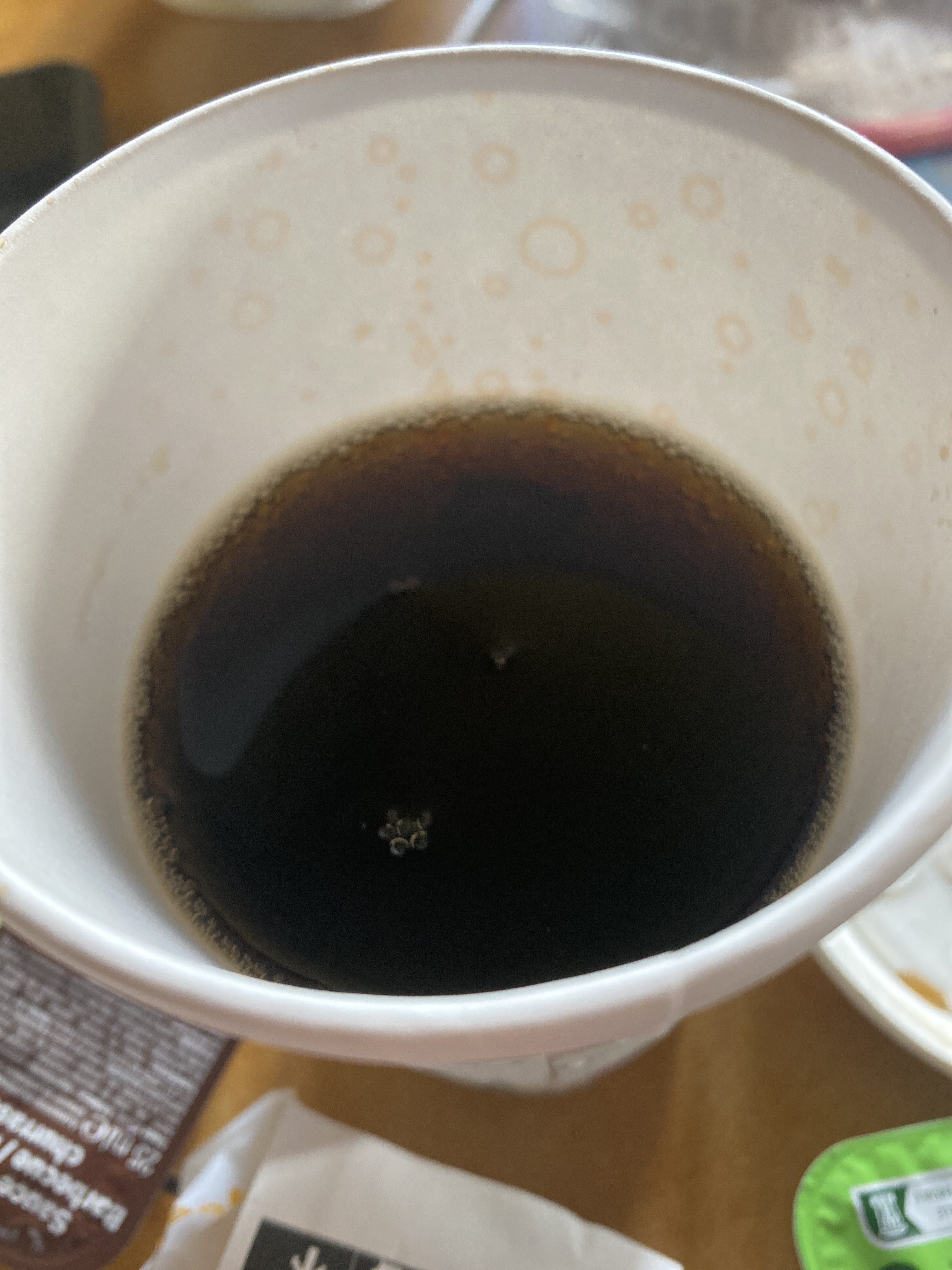 Ce matin rien n'allait ! J'attends 15 plombes au premier guichet pour un menu brunch... Personne ne vient. J'avance au guichet de retrait... Un menu brunch avec café jus d'orange. Pan cake OK. Egg muffin OK. Le café à du être coulé en premier... FROID. le jus d'orange... En open a du avoir la poche de changée sans être purgée au début... De la. Purée en guise de jus. Et les couvercles café et jus inversé... Merveilleux... 23 novembre 8h23 environ...