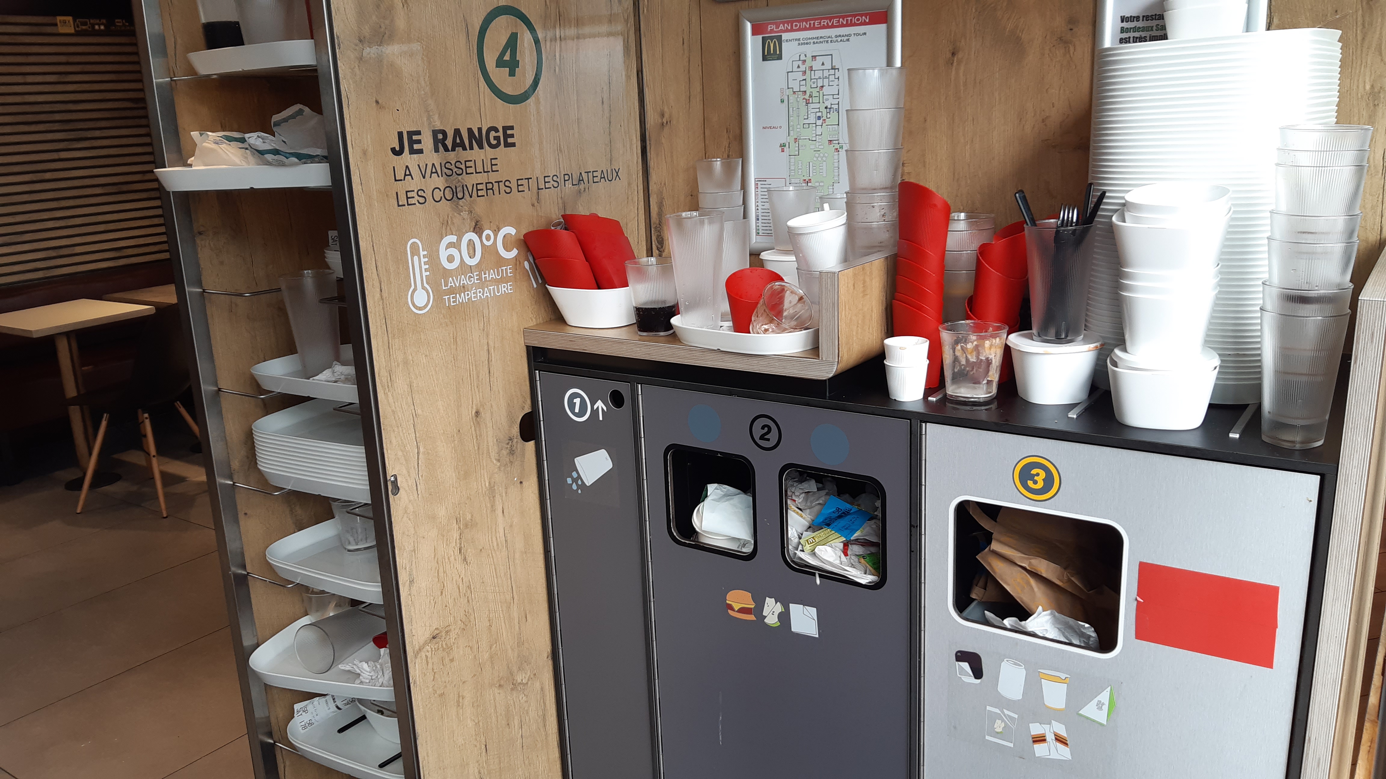 Moins de déchets, bravo à mc Donald's St Eulalie. Plus qu'à trouver un moyen de faire pareil pour les commandes à emporter.