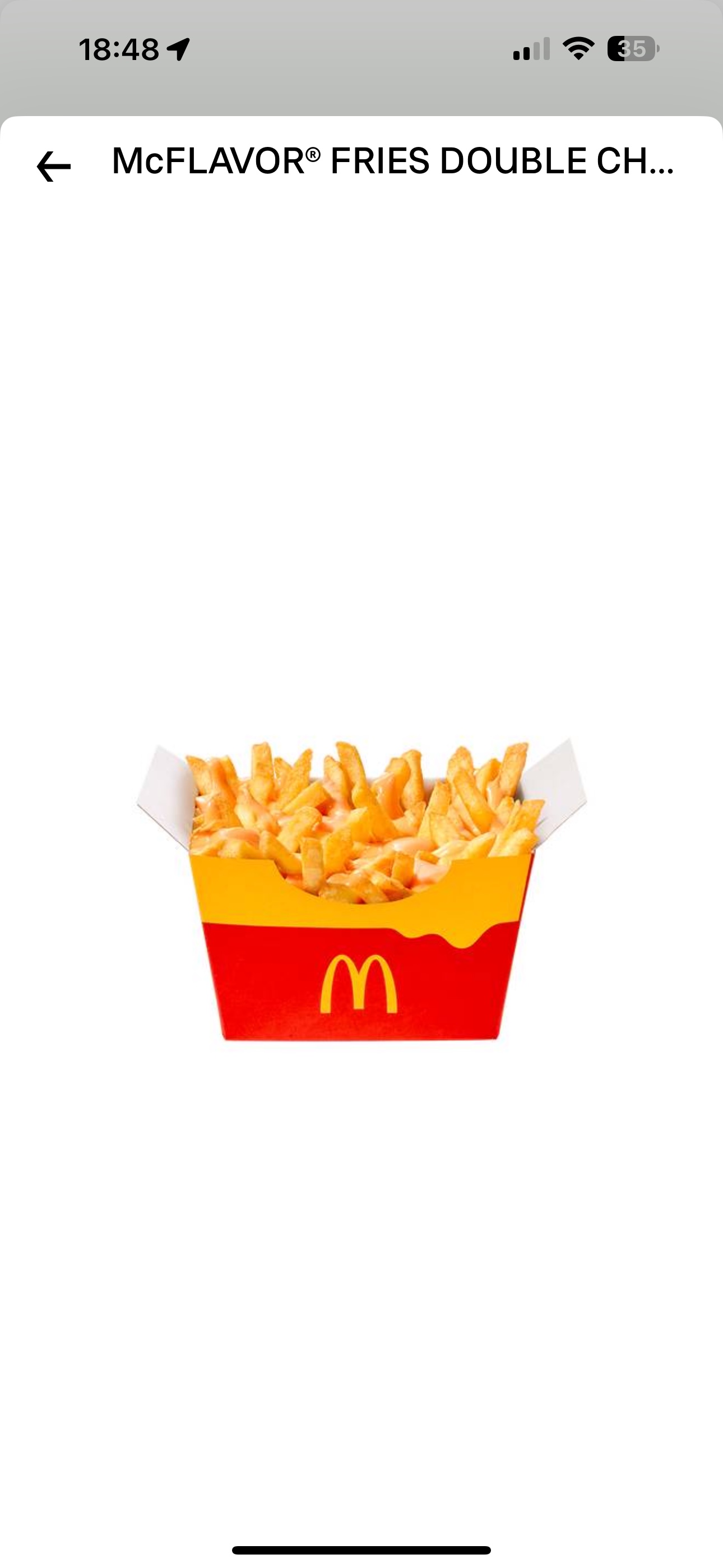 Bon.... Comparer a d'autres McDo, ma commande est pleine 👍🏻 seule petit bémol, les frites.... Je pense que la quantité n'y est pas du tout. A voir sur la prochaine commande.