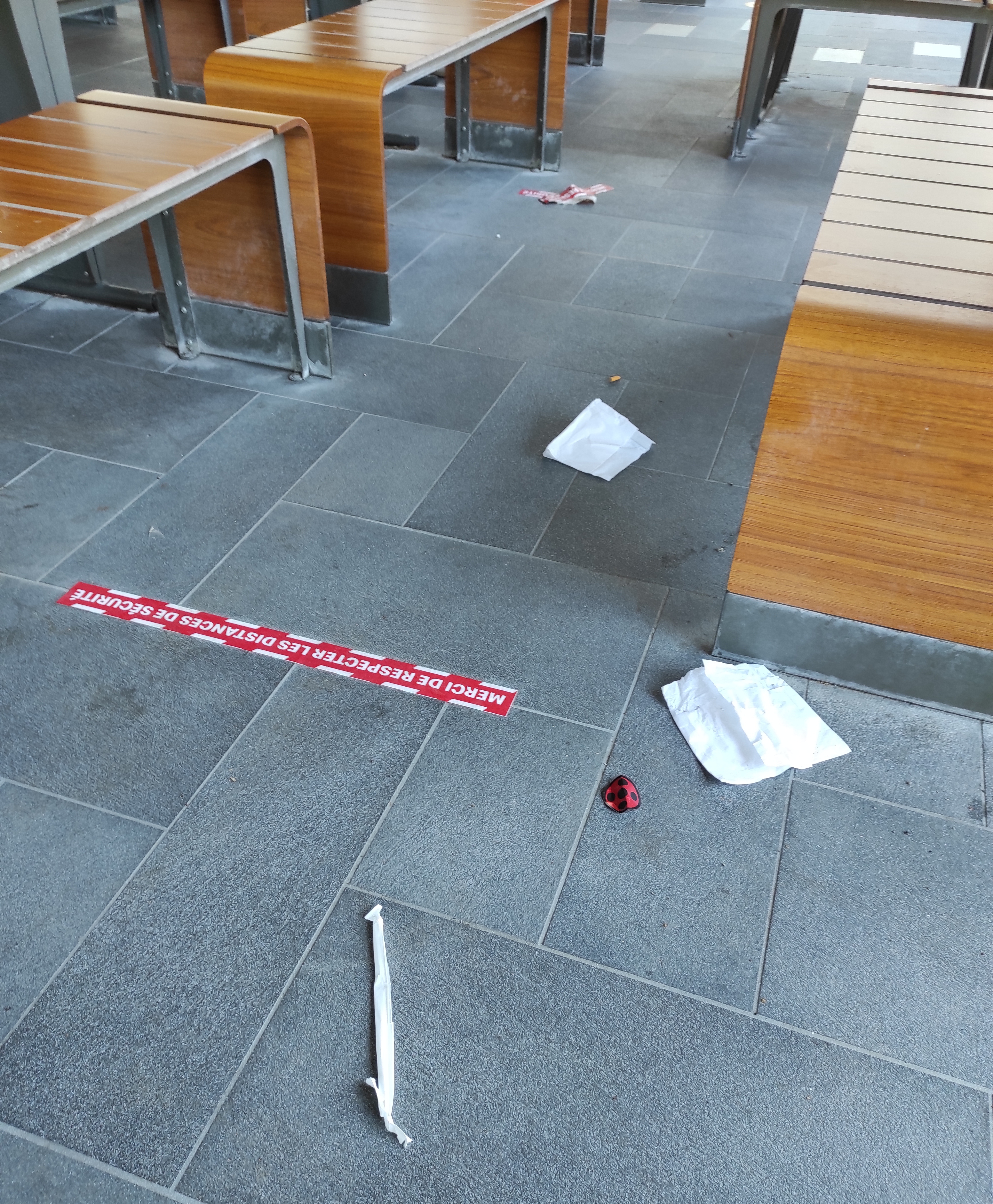 Pas de serviette, pas de sauce, pas de set en papier sur le plateau… quant au sandwich, la photo parle d’elle même.
