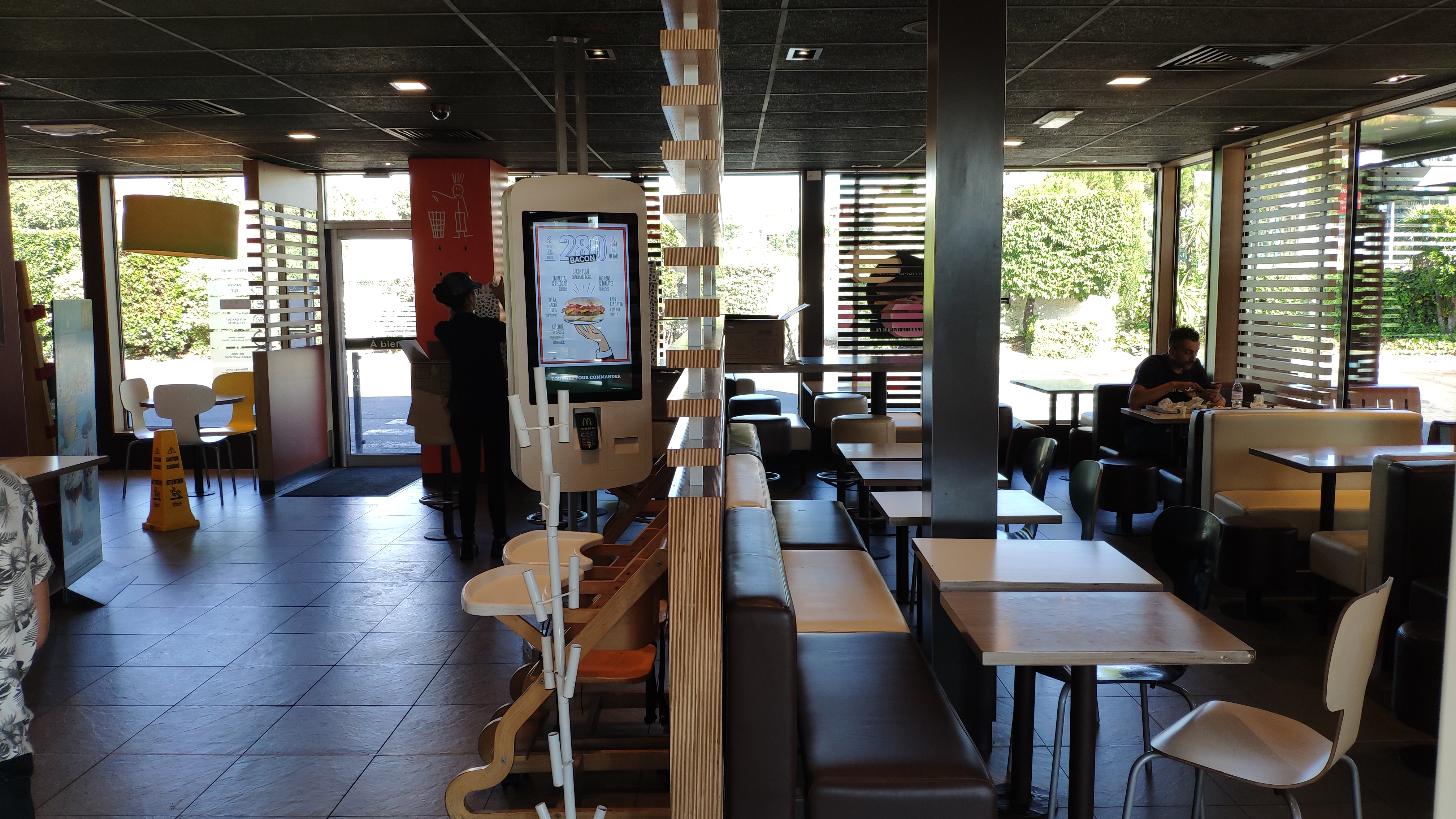 La qualité du repas reste un mcdo. Pour le reste... Nous avons mangé à 16h en terrasse près de l'aire de jeux. Une bonne partie de l'équipe (6/8 personnes) en pause ou en train de squatter la terrasse ? Ont enfumé la terrasse et l'aire de jeux en riant à haute voix du manque d'hygiène de ce restaurant... Comportement déplorable et honteux.