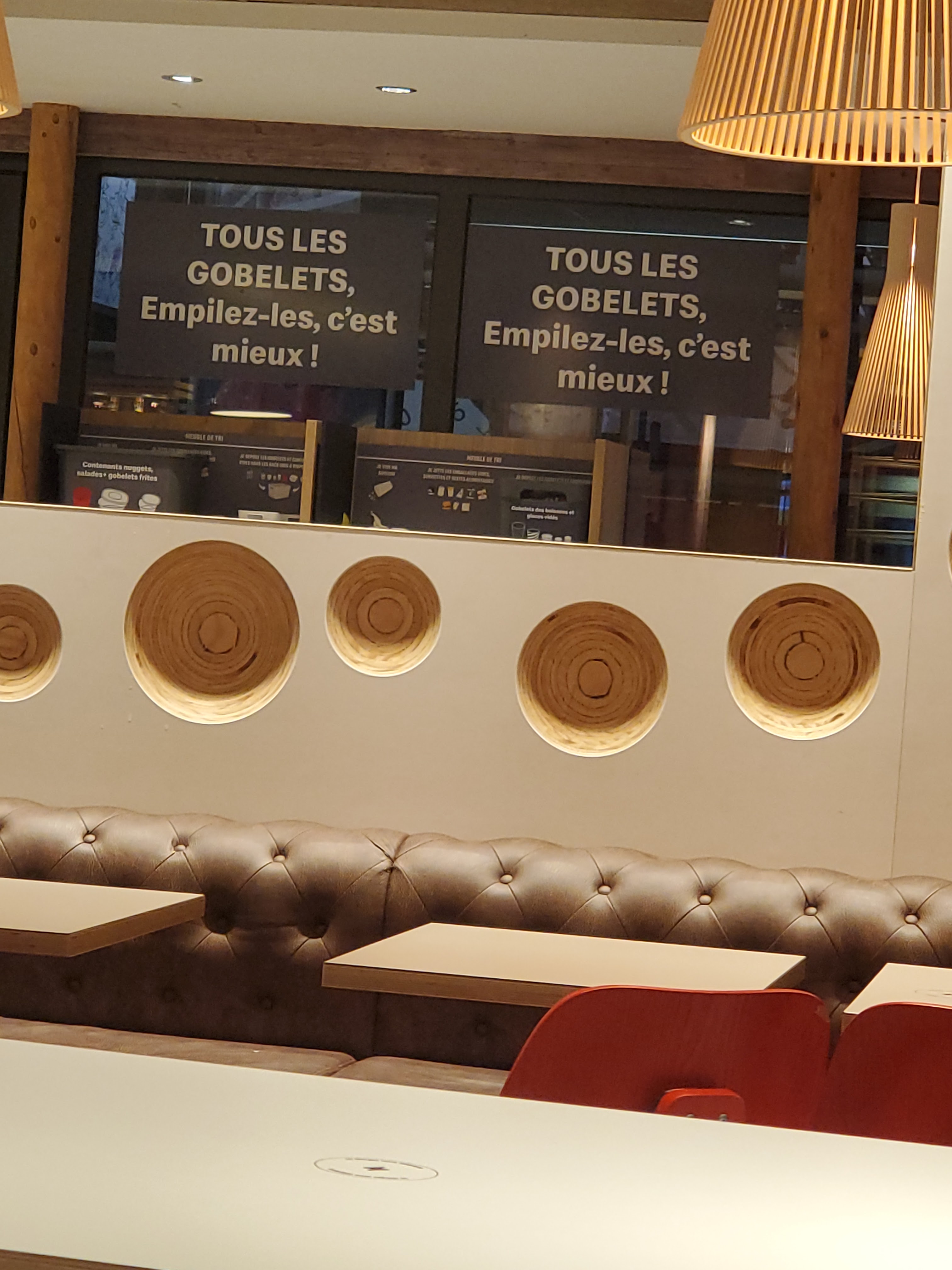 Restaurant chaleureux car le mobilier diffère totalement des autres Mc Donald avec un esprit très cosy et très spacieux avec des espaces familles intimistes et ou le bois est de mise