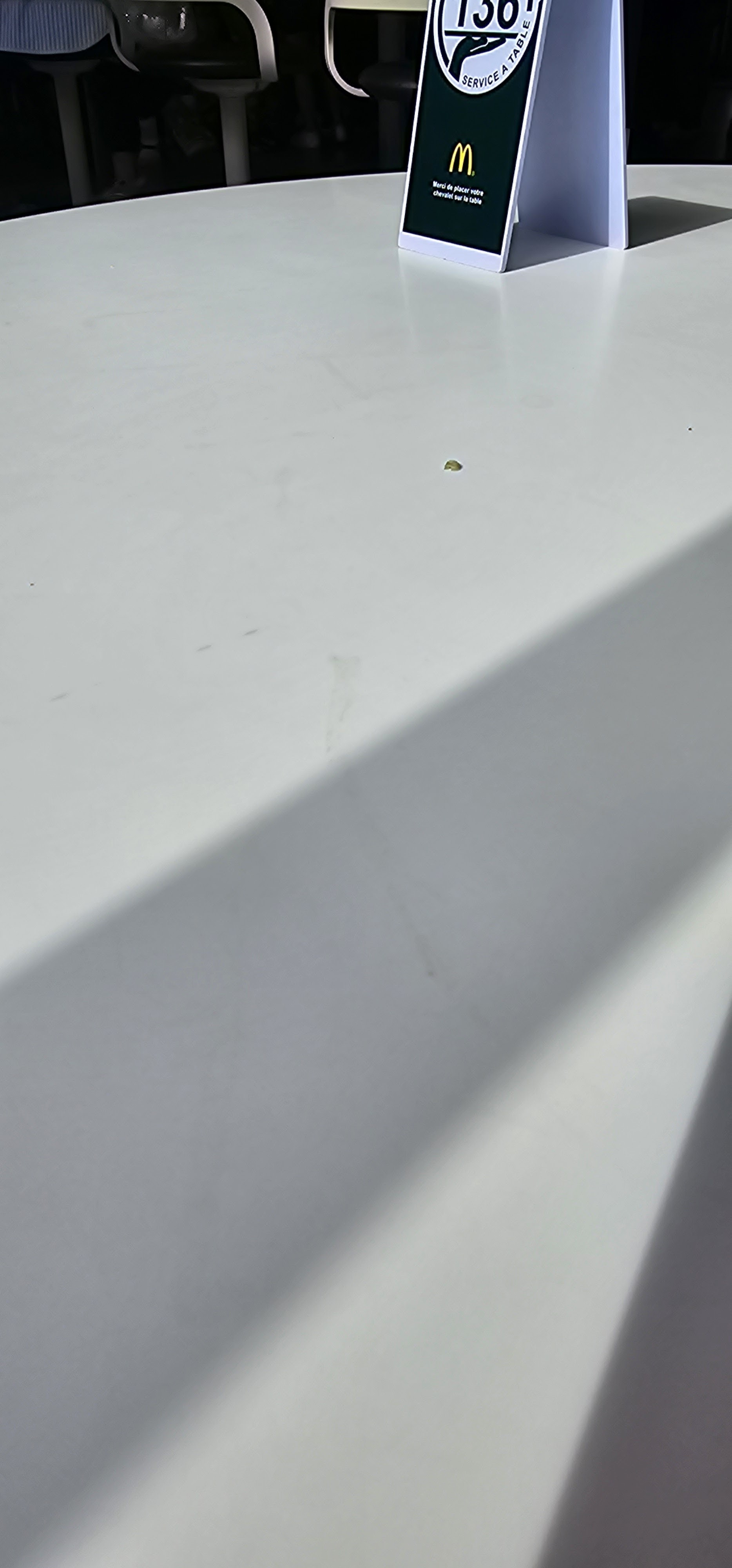 Arriver vers 13h30 14h salle très sale table non nettoyer . Burger froid frite froide manque sauce Ce mc Donald se dégrade avec le temps