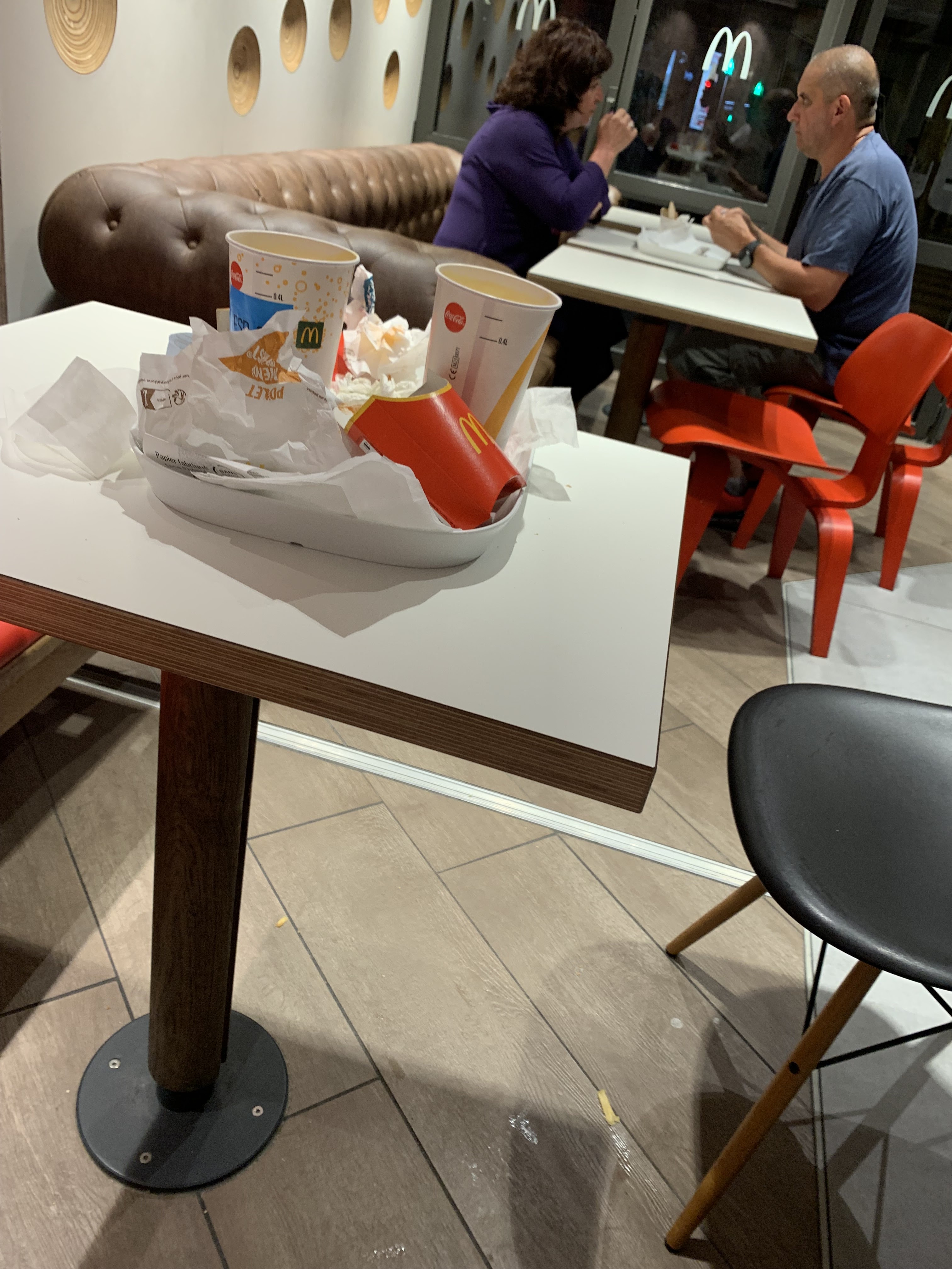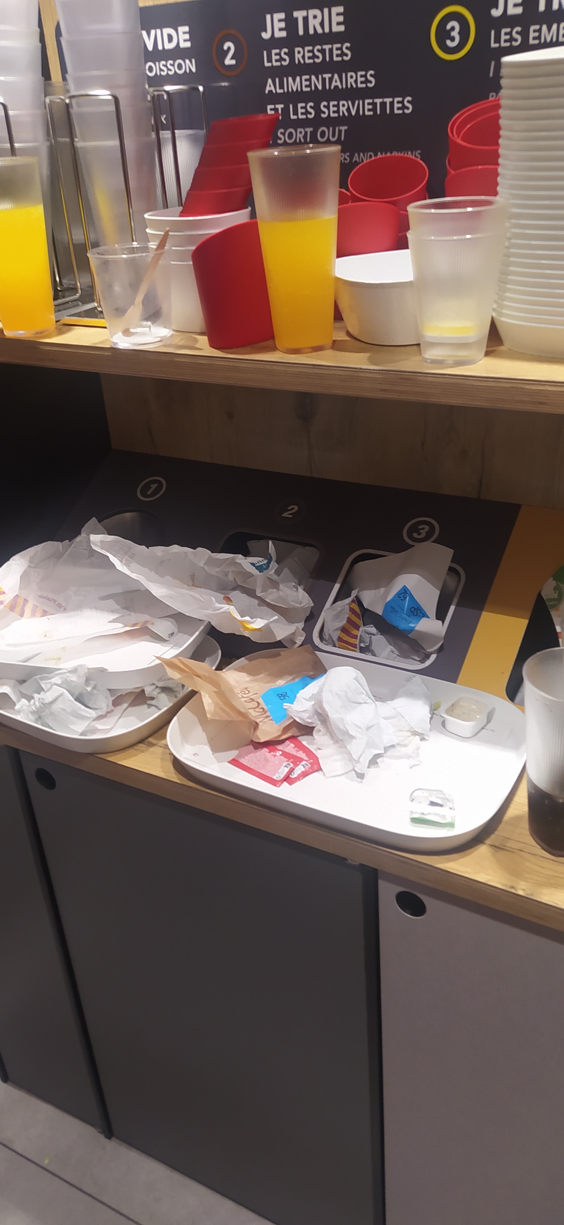 Table sale, nous avec des gobelets et de bol pour le mac Fleury en carton alors que c est interdit. Vive Mac Donald