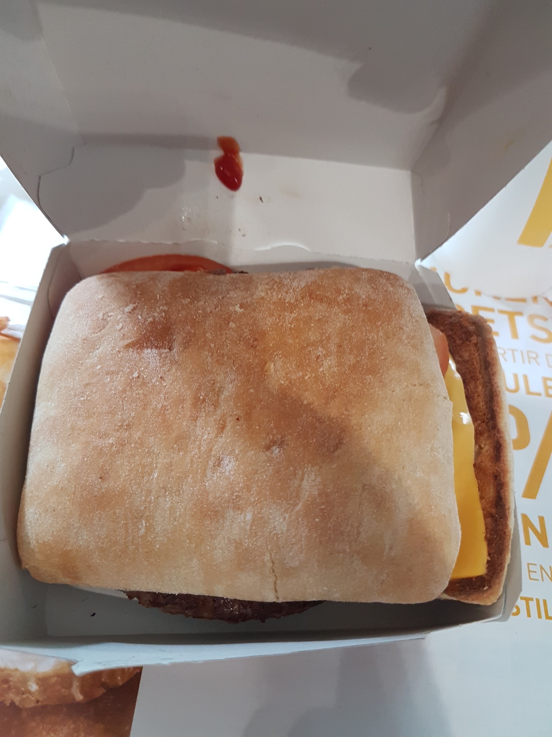 Frites froides, burger froid et plateau sale (traces de ketchup donc pas nettoyé). Lieu très sale et ne parlons pas des toilettes on a l'impression qu'on va chopper tout et n'importe quoi a chaque pas. Service très rapide néanmoins.