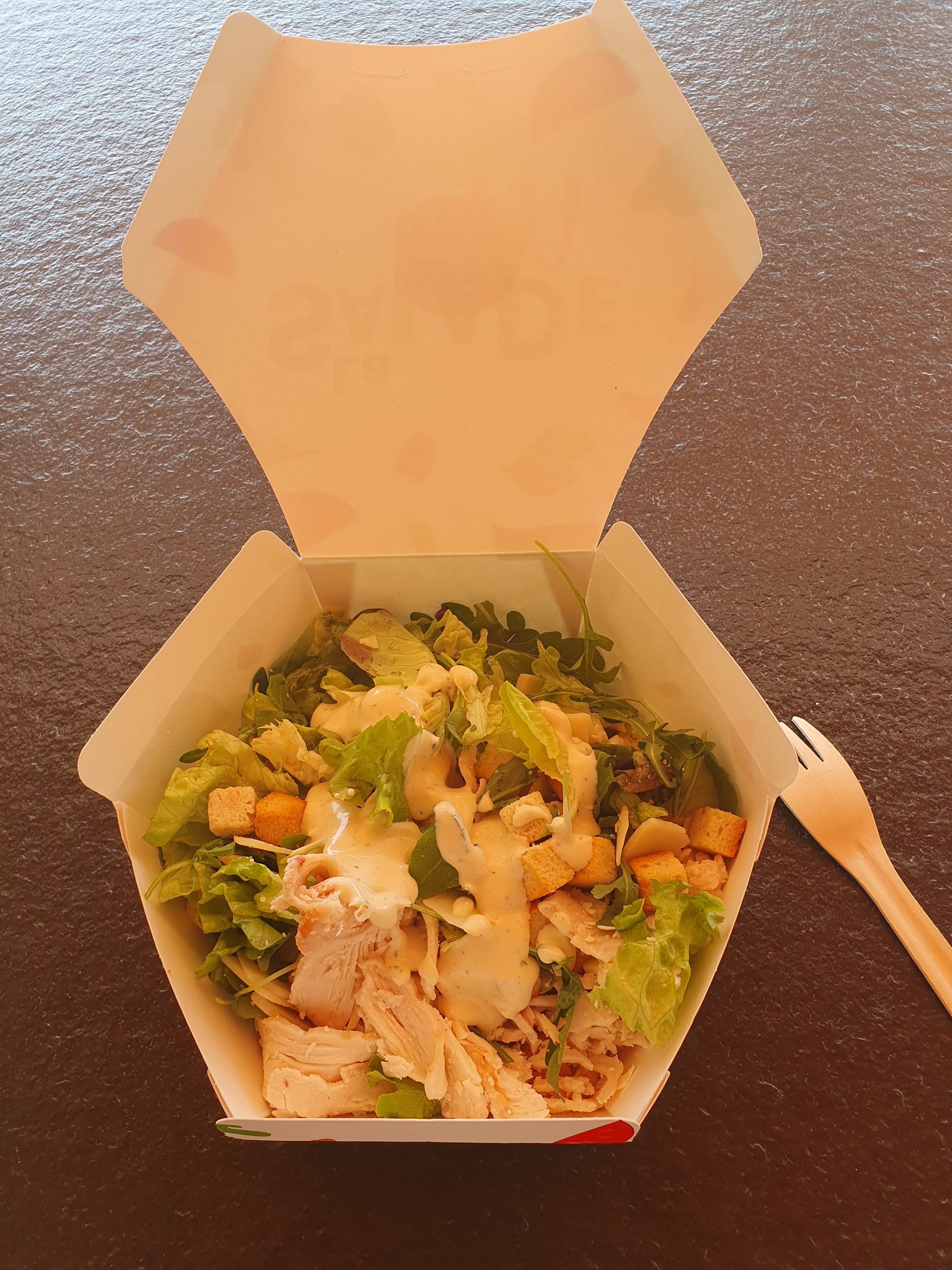 Très déçu par la quantité et la qualité par rapport aux tarifs demandés et en comparaison avec dautres fournisseurs : salade césar très moyenne et non gourmande pour 10 euros, frites pas bien remplies dans le cône et hamburger pas très ressemblant avec la photo de présentation. A méditer....