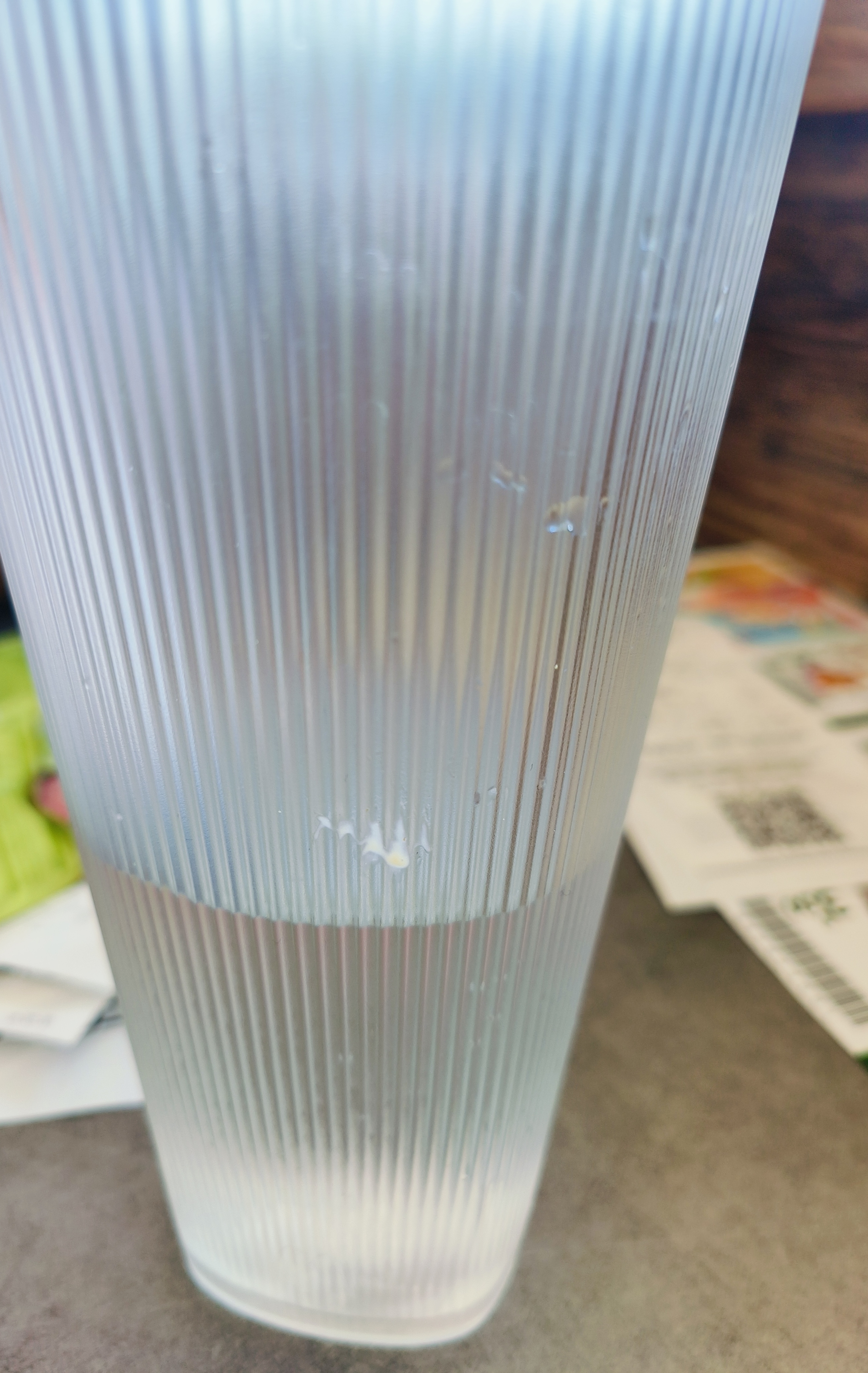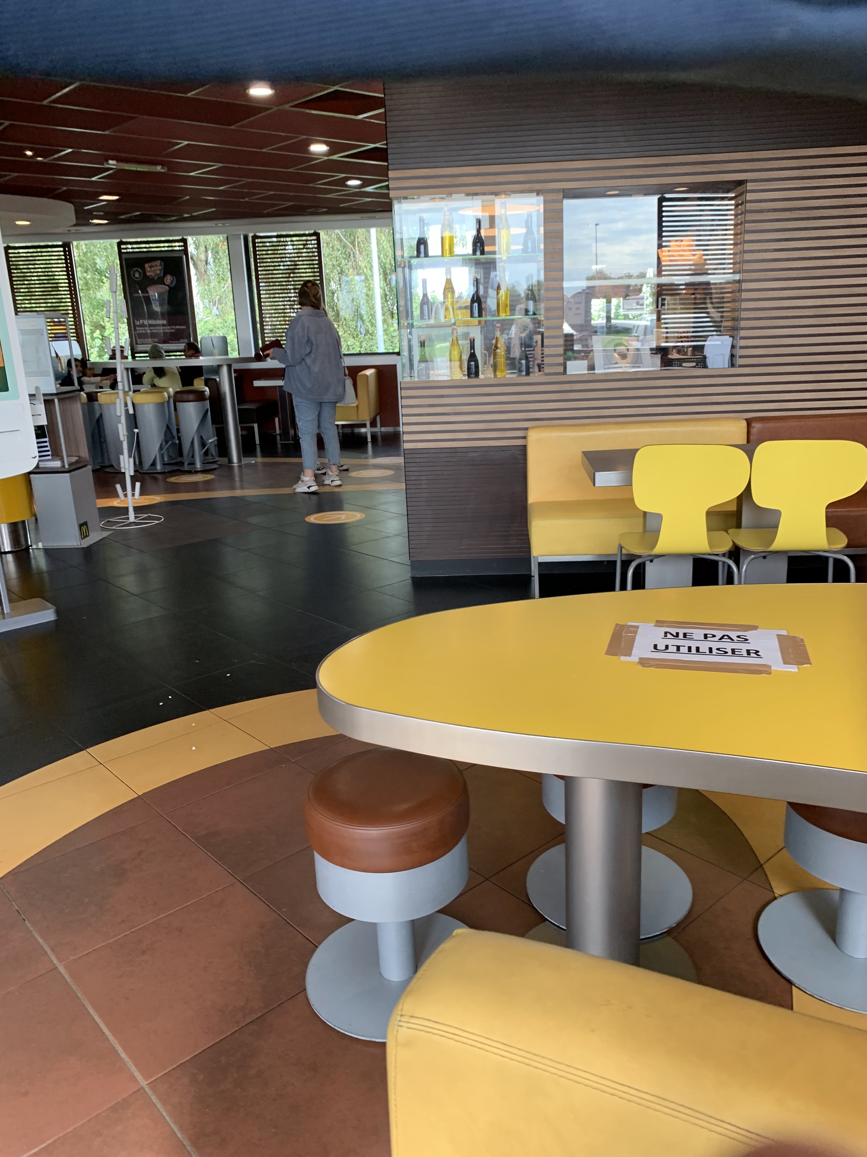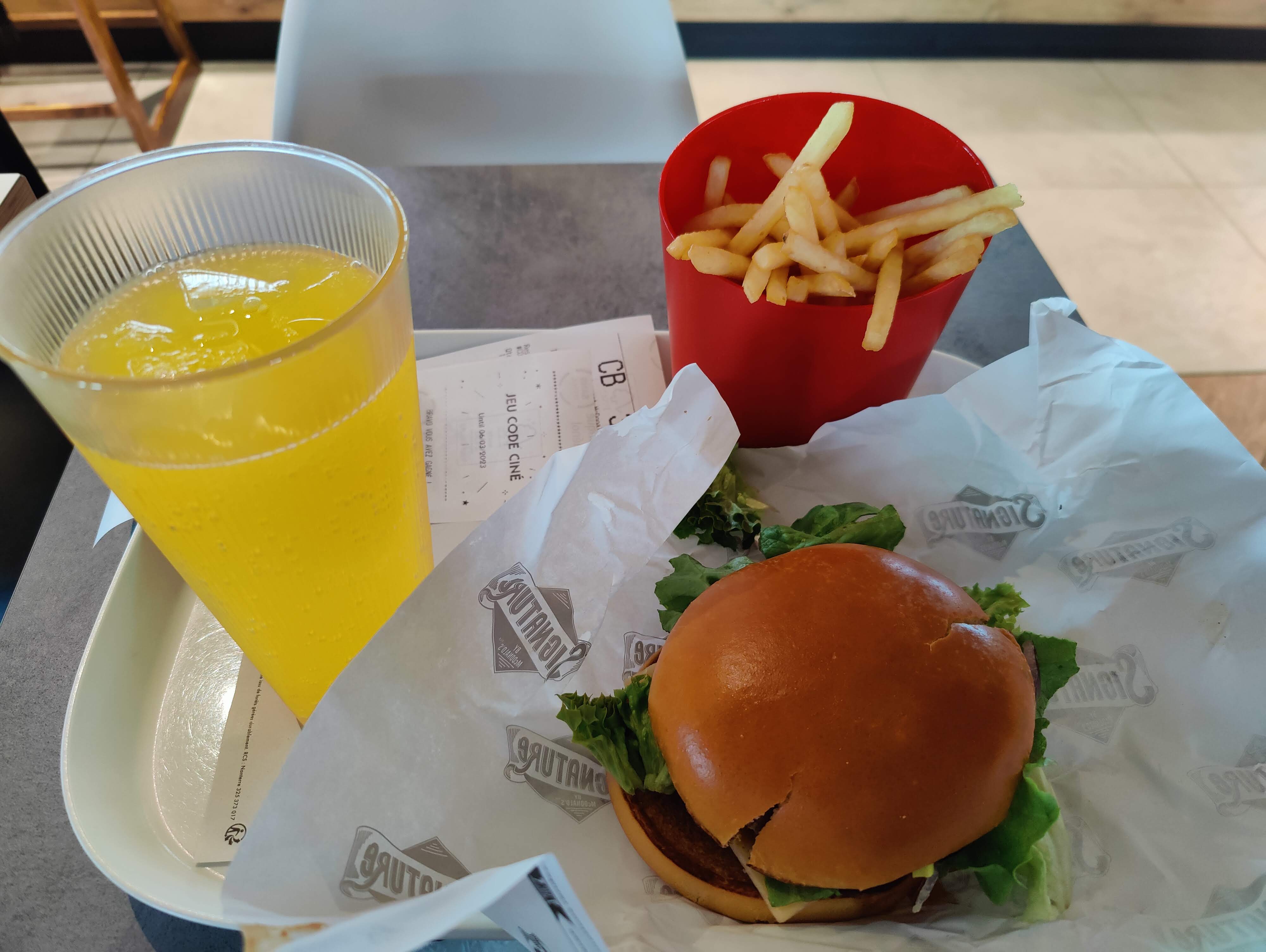 Arriver au McDo, commander et pas de chevalet, donc j'attends à la caisse. La commande a dû passer devant moi au moins 2 fois avant d'arriver entre mes mains. Donc 2 fois le tour de la salle de restaurant... C'est super hygiénique. Le verre avec un truc qui colle dessus. C'est beau les verres réutilisables, mais ça se lave !! J'espère ne pas être malade demain.
