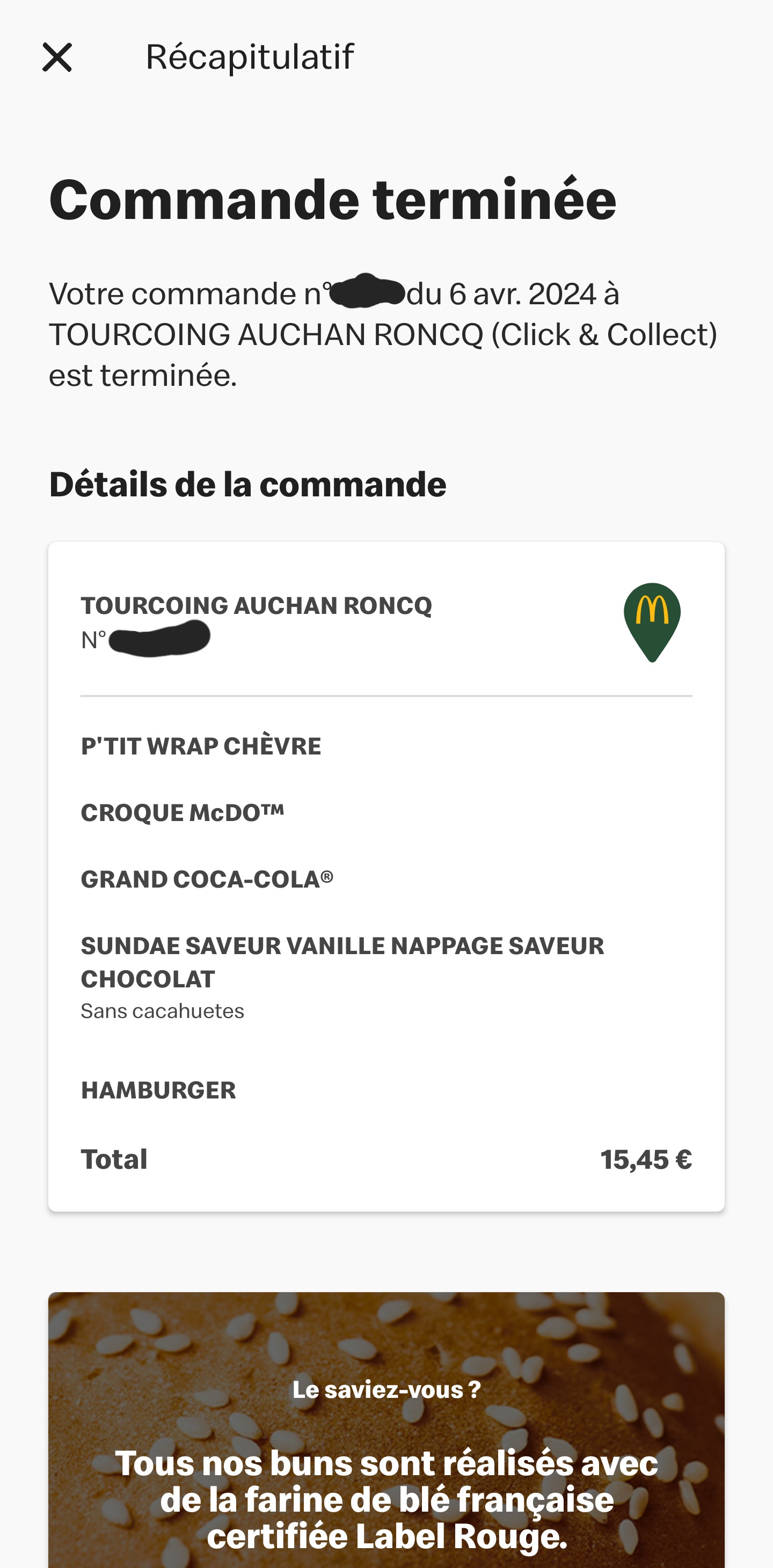 Commande livrée par Uber une nouvelle fois incomplète car ni Mc do, ni Uber ne vérifie la conformité… et pourtant à la vue des prix, on pourrait penser qu’il y a un minimum de service de qualité… Pour la prochaine fois, donnez votre RIB aux clients, nous vous ferons directement des virements bancaires sans commander puisque ça ne sert visiblement à rien! Merci Ronald de ton incompétence… une nouvelle fois, malheureusement… Un client volé