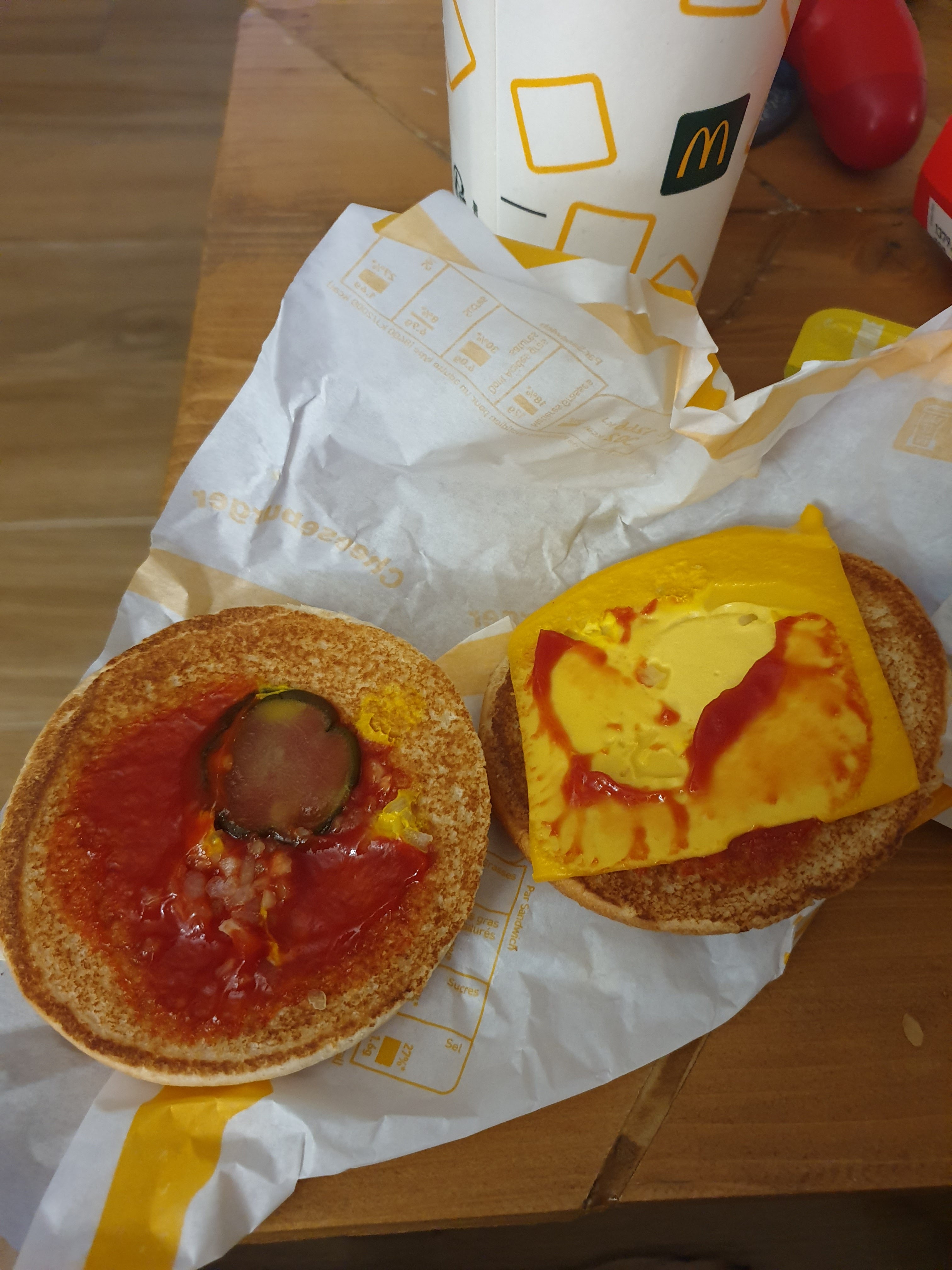 Je tente à nouveau une commande via UberEat. Il manque toujours les sauces d’habitude… mais là… il manque le burger… hallucinant, honteux Qui prépare une commande et oublie le Double Cheese, élément principal… Adieux Ronald