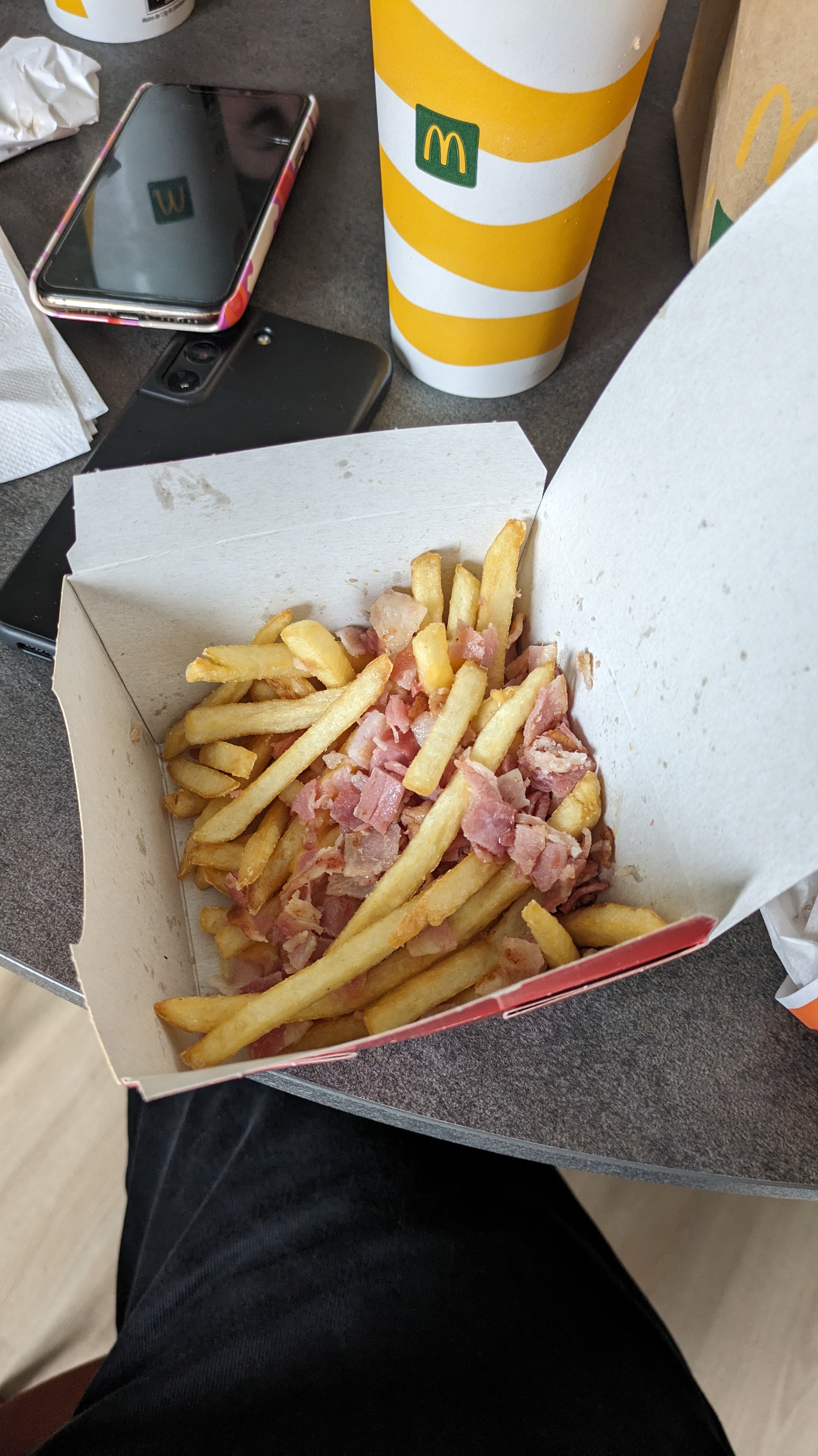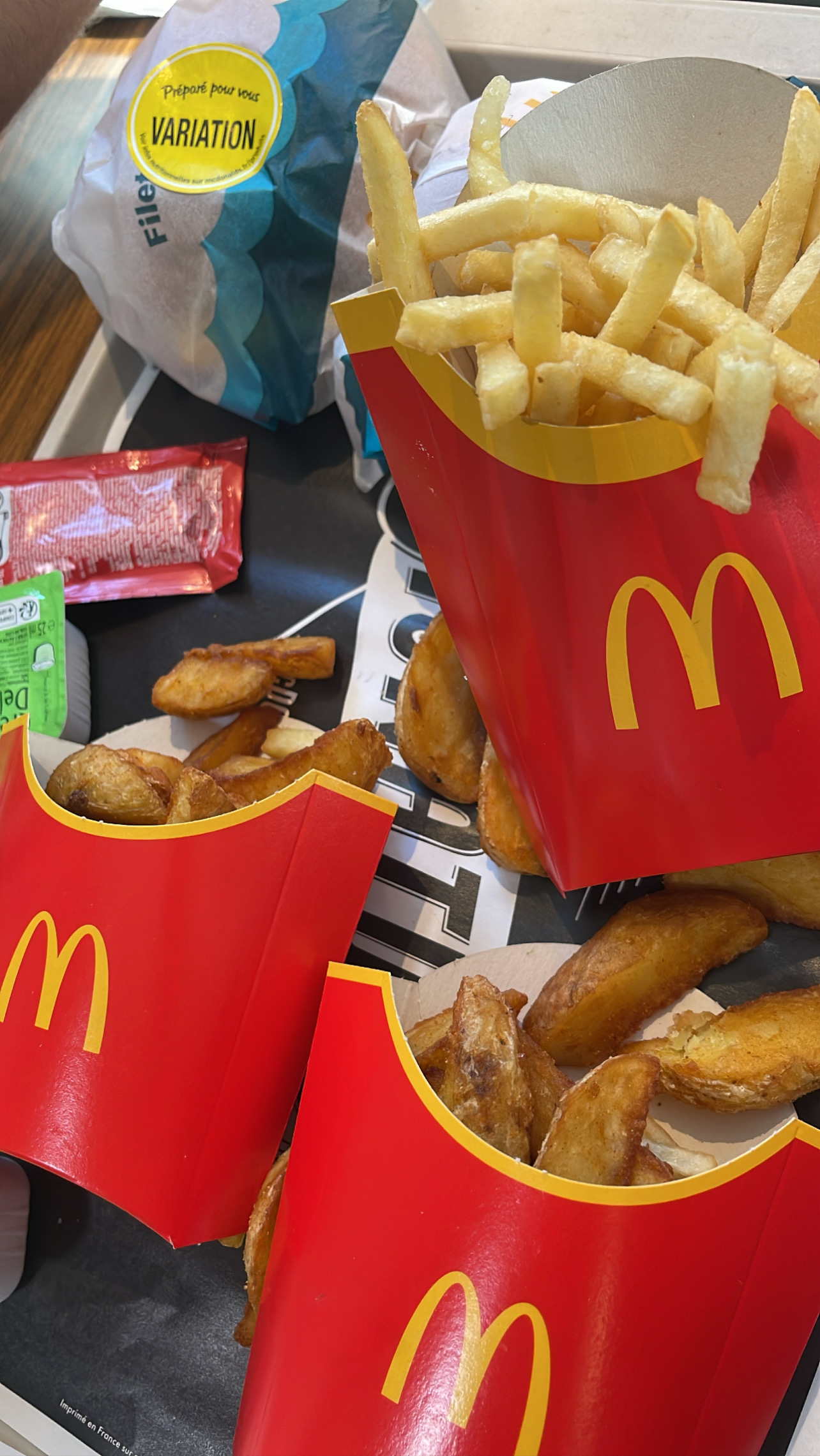 Vous n’en aurez JAMAIS pour votre argent, A FUIR IMMÉDIATEMENT. Comme tous les autre commentaires, je confirme que ce Mcdo est désastreux: - comme on peut le constater sur la photo, il s’agirait au moins de ne pas être radin sur les quantités au vu de l’augmentation des prix. - contente de pouvoir manger des potaetoes, je l’ai de suite recraché. La deuxième bouchée m’a traumatisé, elle a le goût et l’odeur de pourri. Cela est inadmissible. - 2 erreurs sur ma commande. J’ai commandé 2 portions de potaetoes et j’en ai reçu qu’une, de plus ils ont oublié une sauce! - il ne serve pas du coca zero mais du ZERO COCA, il y n’y a zero gout de coca (bon allez un petit peu) - une personnelle en particulier devrais être plus agréable. Ce n’est pas étonnant que la qualité soit ainsi si les employés ne veulent pas travailler ici.