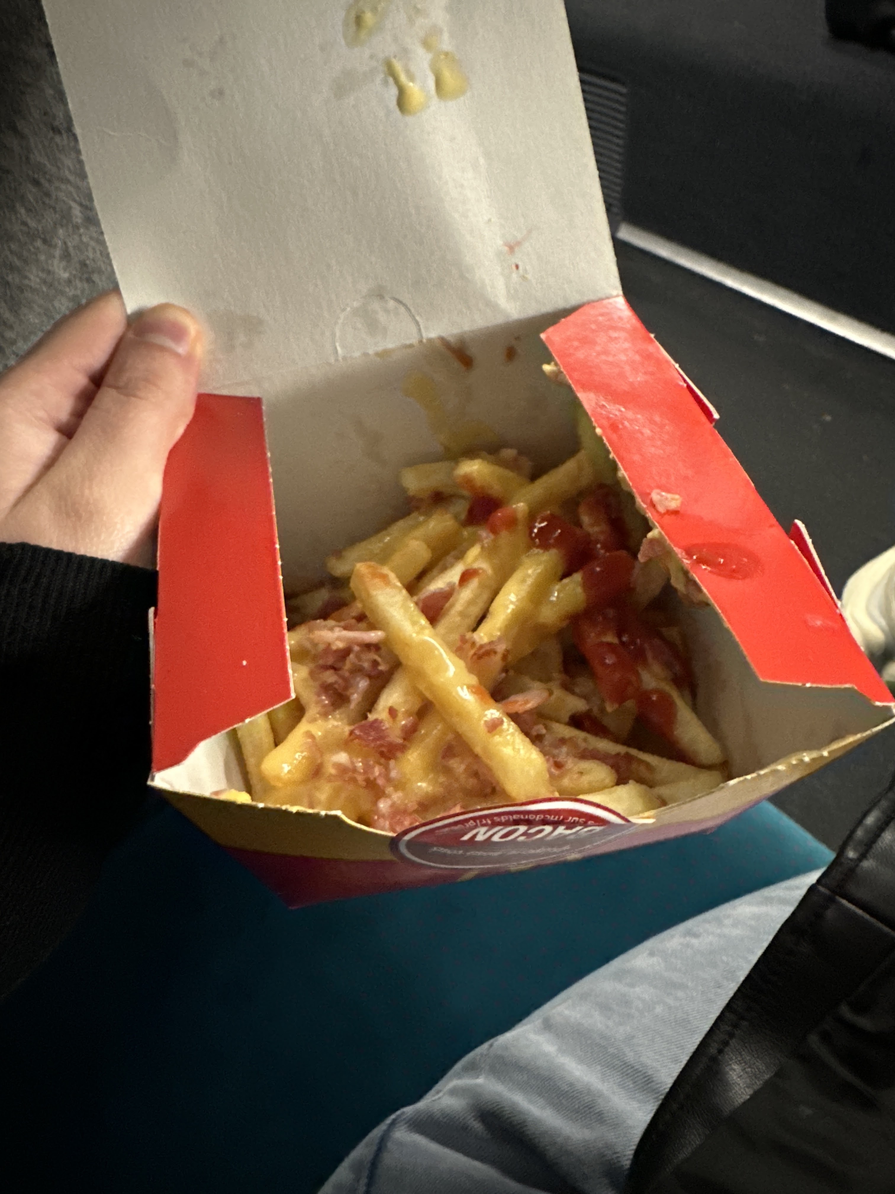 J’ai demandé frites avec CHEDDAR SEULEMENT ON M’A MIS CHEDDAR + BACON ALORS QUE JE N’EN MANGE PAS C’EST TRÈS GRAVE