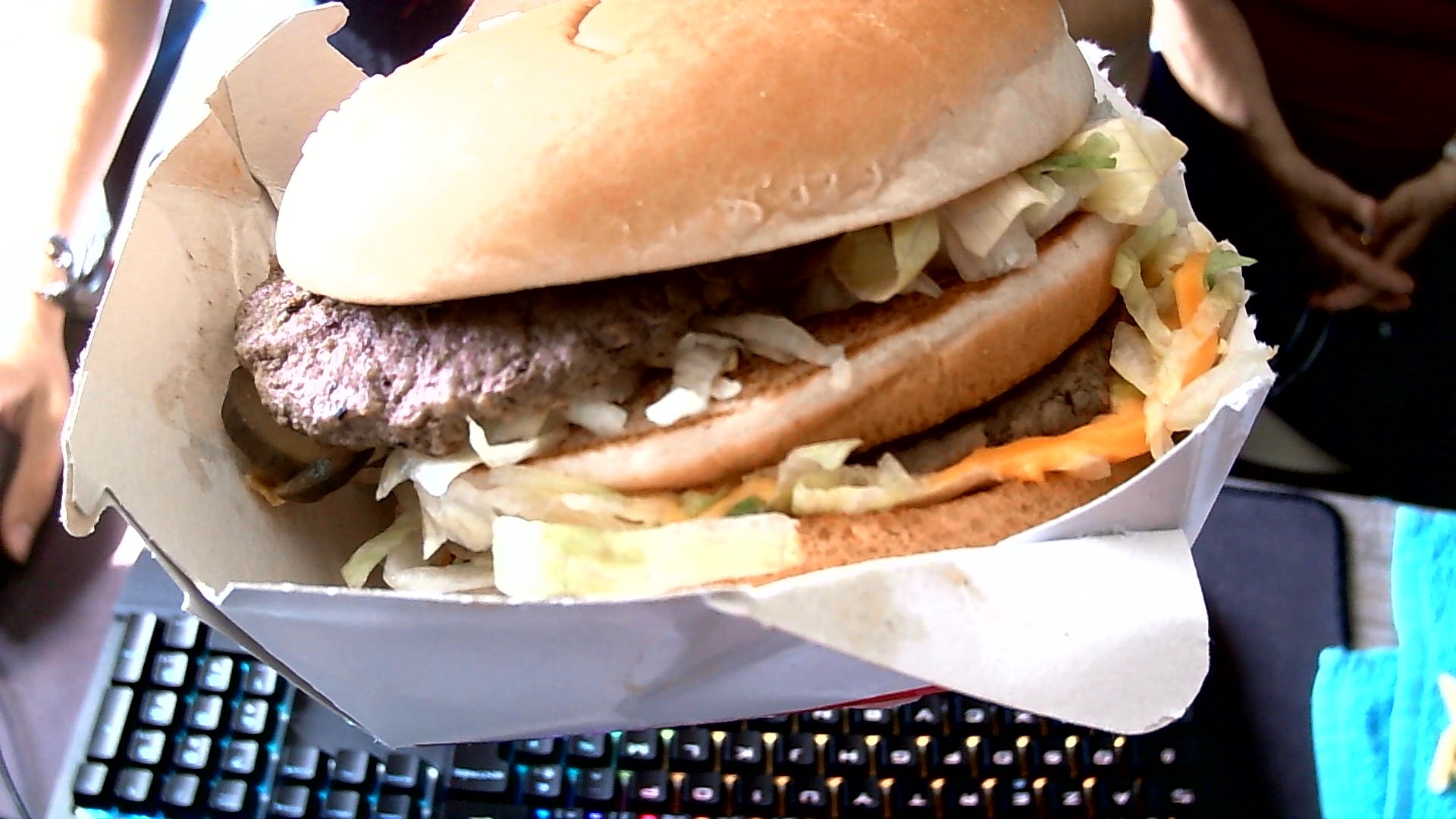 Suite à une commande de type Big Mac en demandant sans condiments malheureusement la personnes est donc tombée sur un burger constitué uniquement de condiments. Aucun respect de la commande et aucun moyen, de la changée.