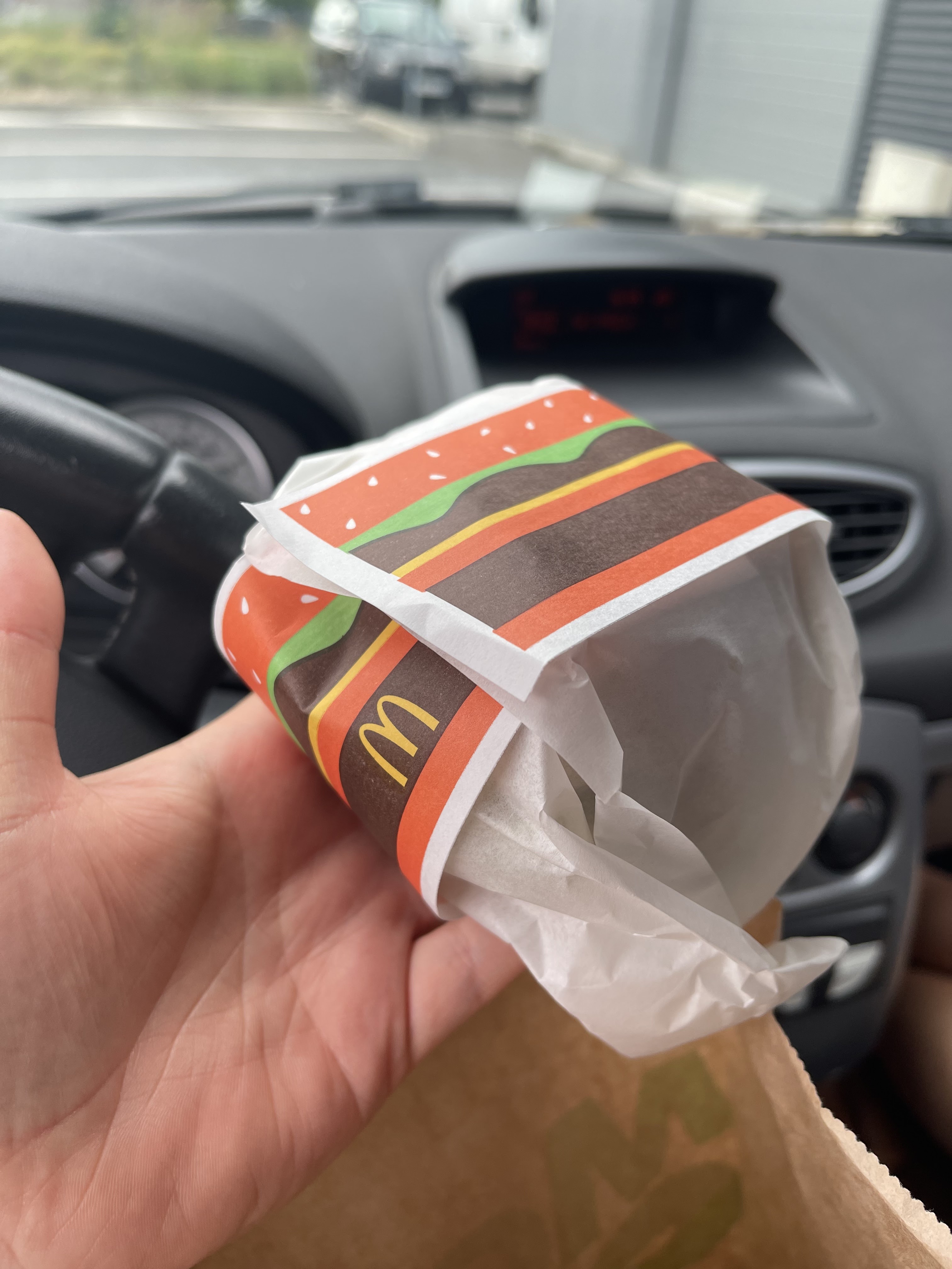 Bon alors ok... C'est photo non contractuelle mais il y a quand même des limites... Vous les passez dans une presse avant de les servir aux clients ? Deuxième fois que je passe au drive et deuxième fois que le Big mac est compressé !