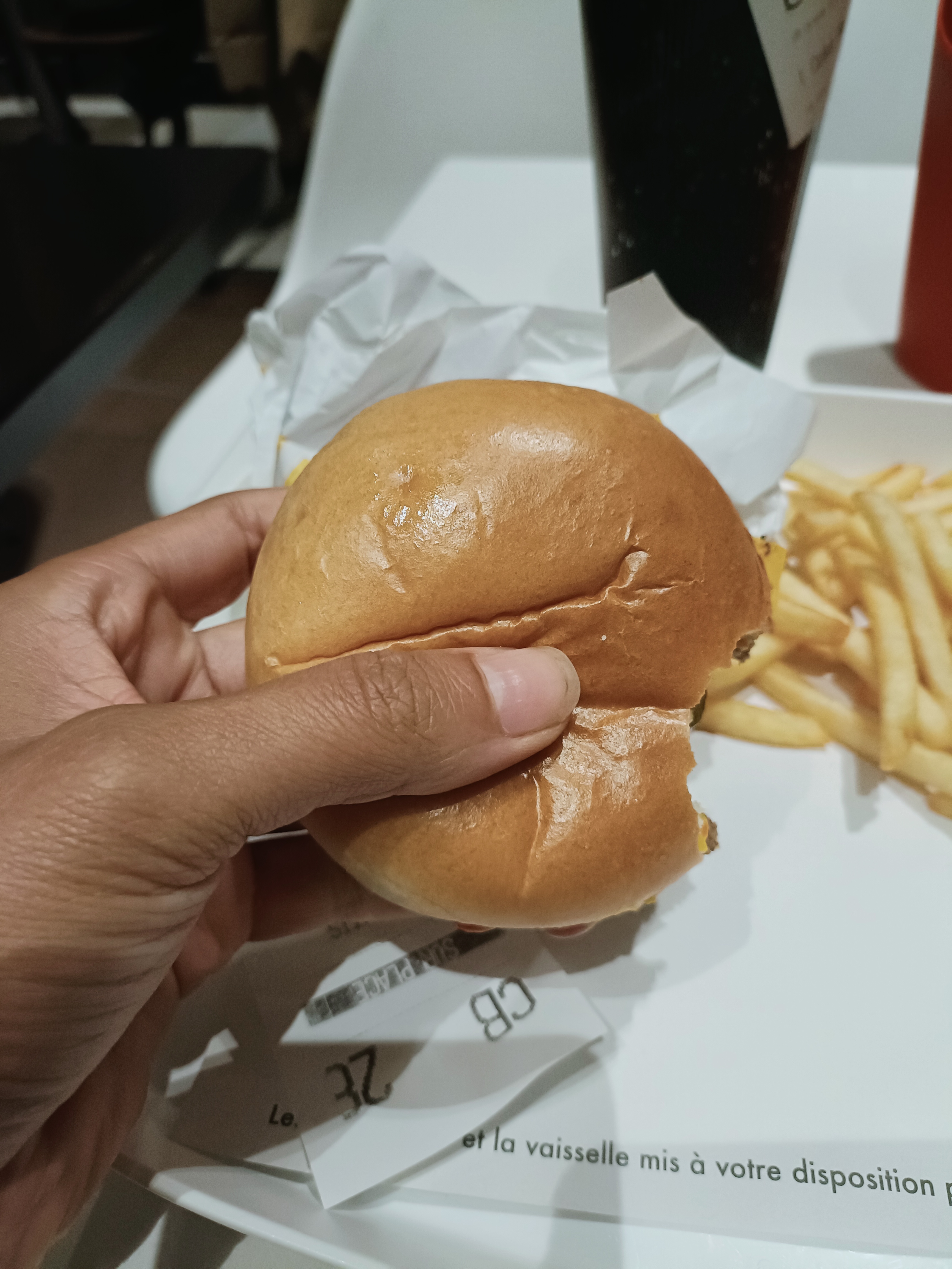 Pour notre part tout était Parfait !!! Super accueil de Camille à la caisse A-D-O-R-A-B-L-E, qui a été tres gentille avec mon fils! service rapide et repas chaud des frites chaudes !!! Enfin ! Un grand merci à toute l'équipe ainsi qu'à la Manager. Nous avons été très touchés par votre gentillesse envers mon fils nous reviendrons plus souvent désormais ! A bientôt