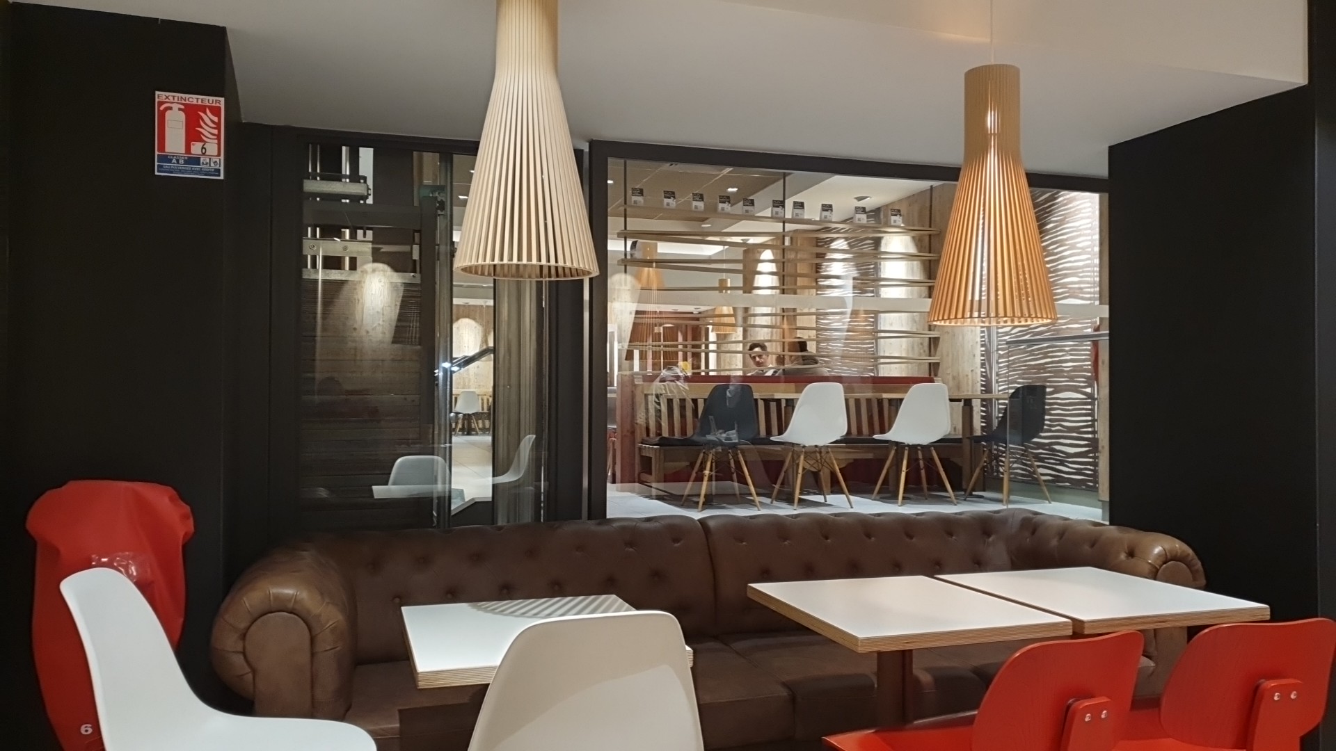 Étage très lumineux grâce à un puits de lumière naturelle. Par contre excessivement bruyant. Le vigile, accueillant, souriant et courtois. Côté repas, c'est comme les autres Mac Do. Pour moi ça reste exceptionnel d'y aller.
