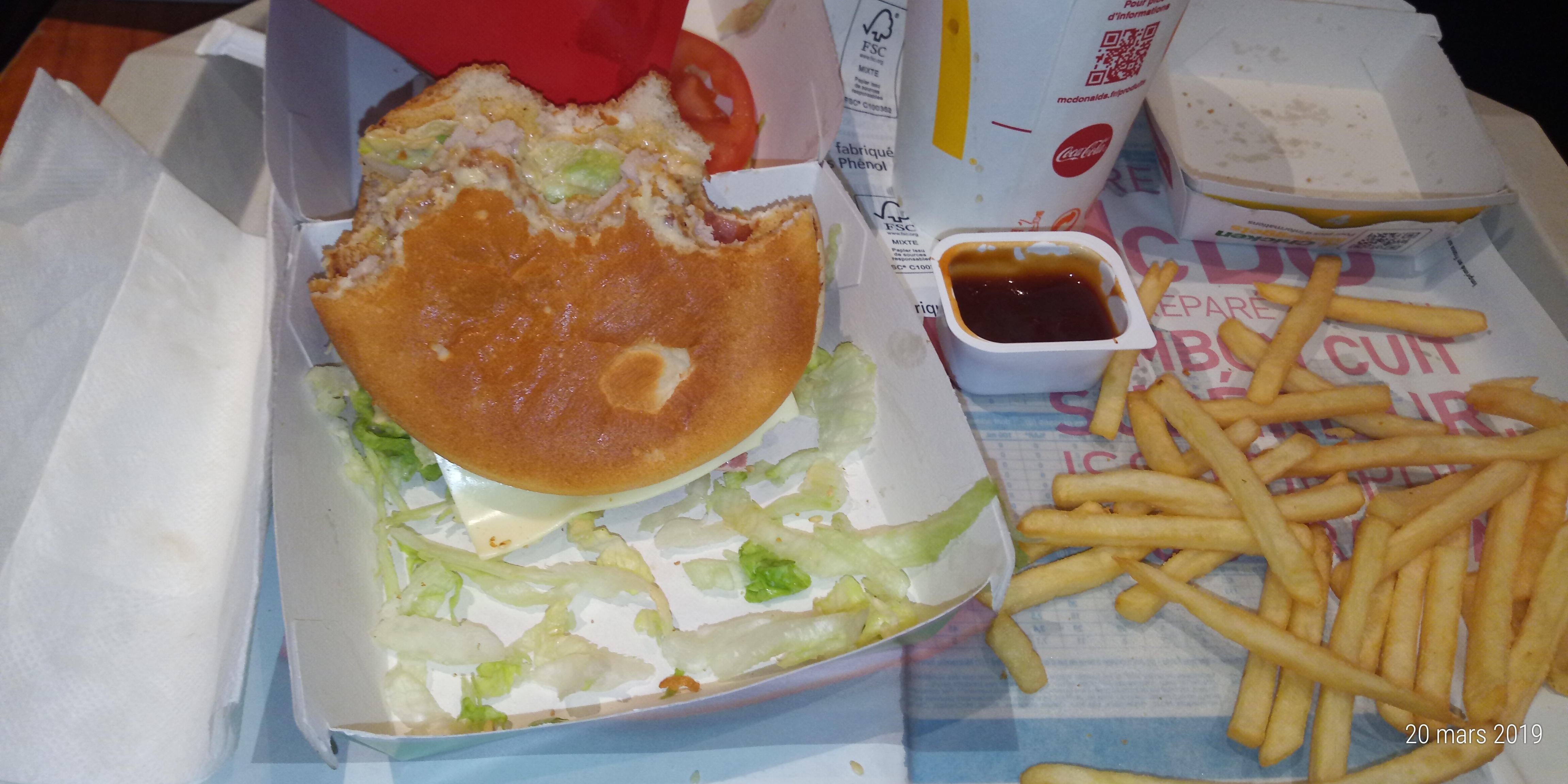 Je ne suis déjà pas fan de Mcdo en général mais pour faire plaisir à mon fils, pourquoi pas de temps en temps.... Mais celui de la Défense bat des records. Repas sur place..... récupèré froid😳 et que dire du Royal Bacon.... moins fourni que le simple cheese qu'a pris mon fils....