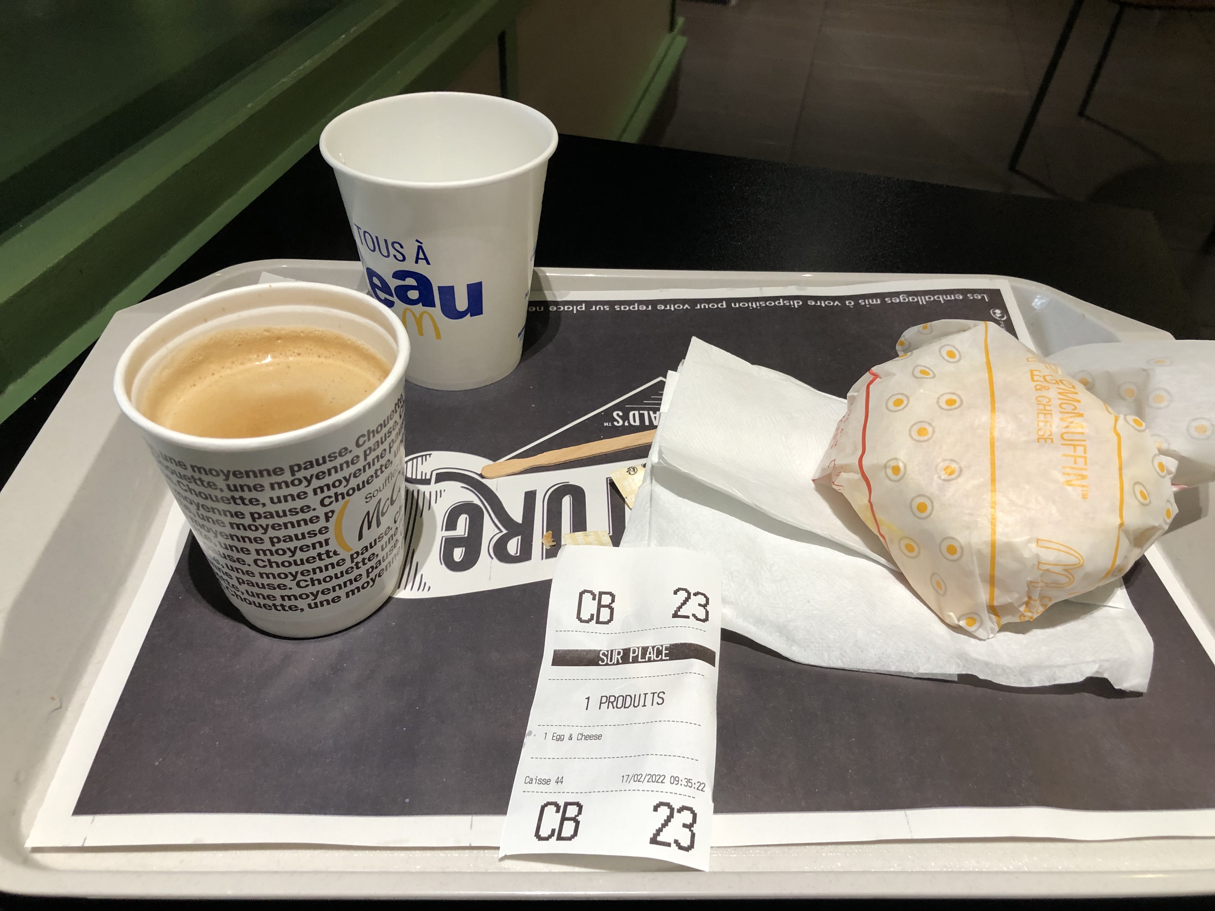 Pas de papier toilette, ni de savon au toilette à l’ouverture. Ce n’est pas hygiénique. Manque le muffin sans bacon au menus.