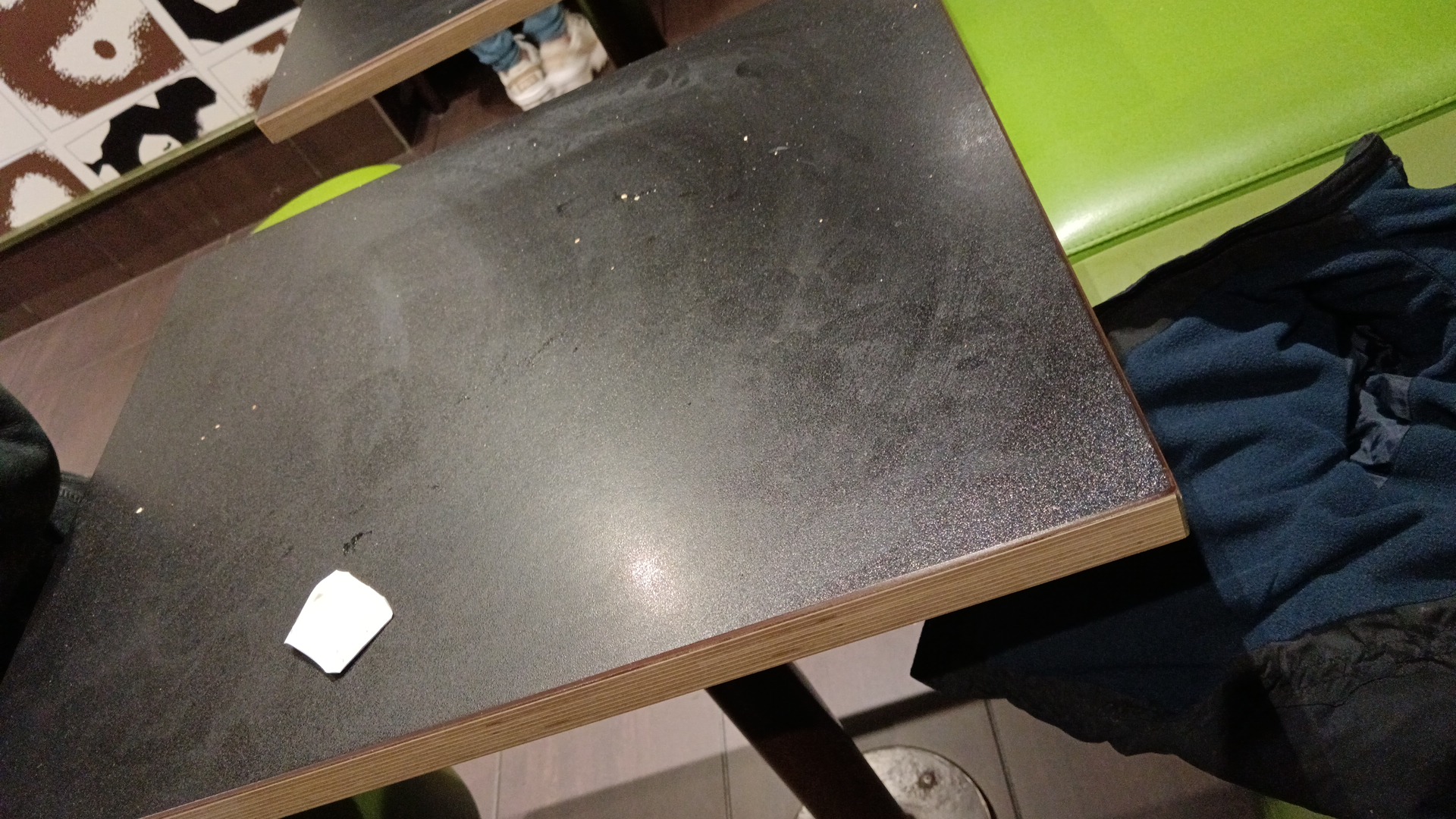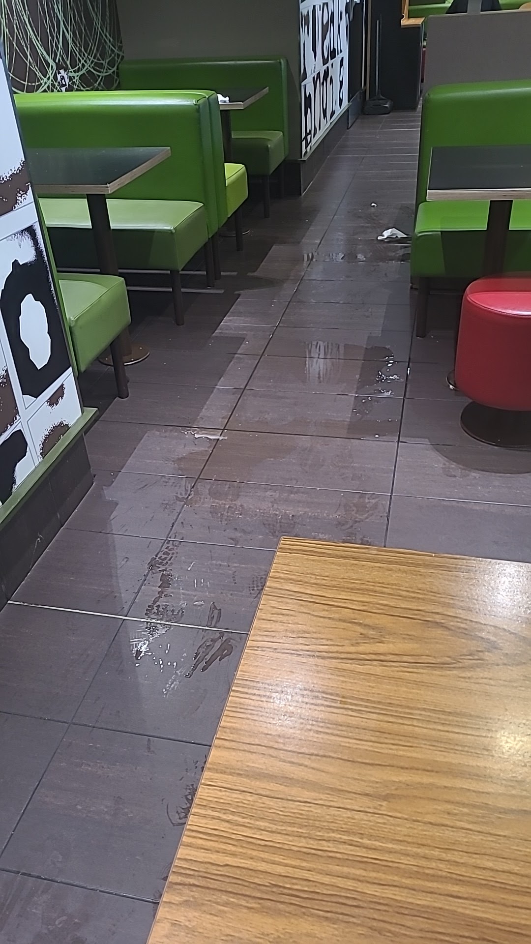 Service OK, mais gros laissé aller niveau ménage lors de mon passage. Une balayette et sa pelle ayant servi à ramasser des déchets étaient abandonné par terre sous une table. Sous une autre, deux grosses flaques de matières liquides non identifié sont resté sans être nettoyer durant toute la durée de mon passage.