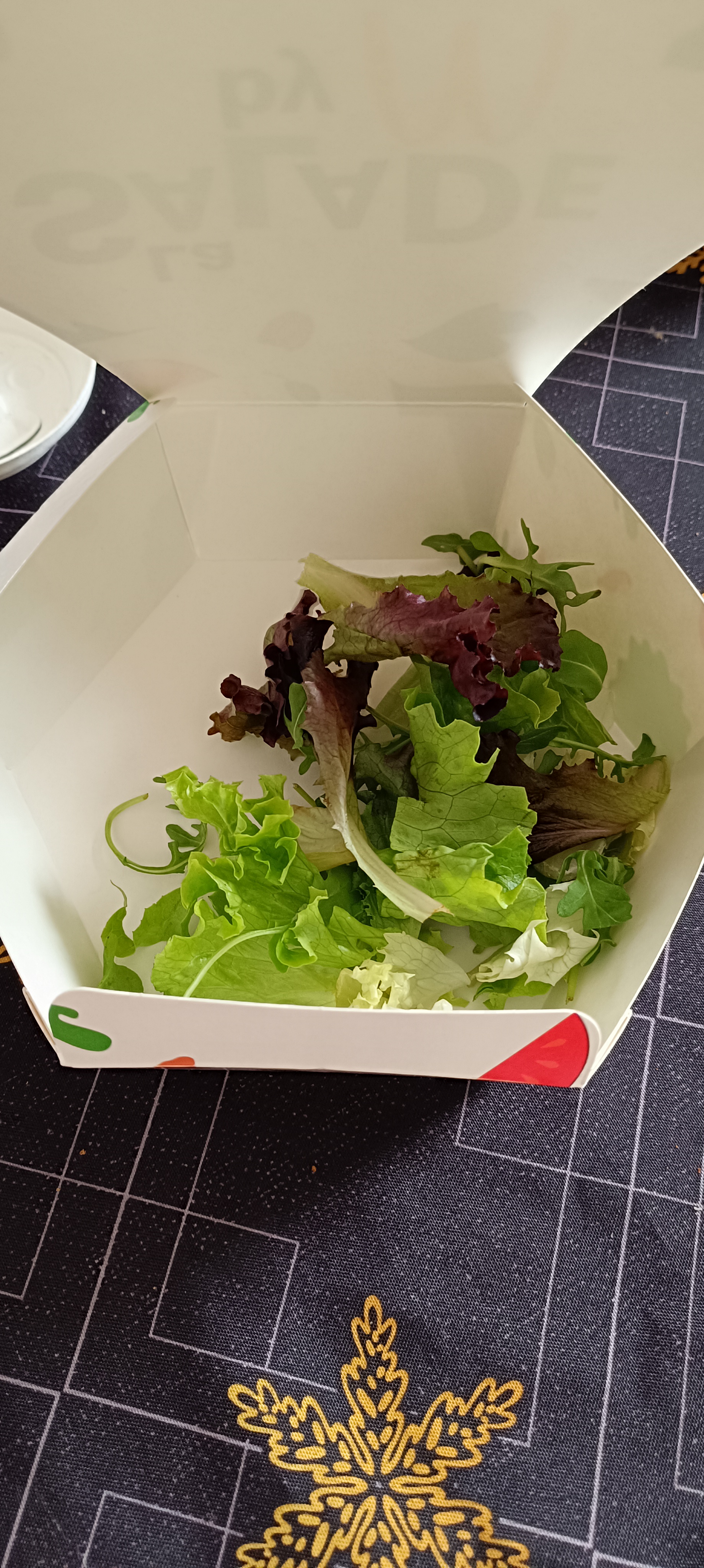 Merci pour la salade. Un vrai plaisir en l'ouvrant. Toujours dans l'amélioration Mac do Clisson.